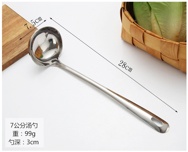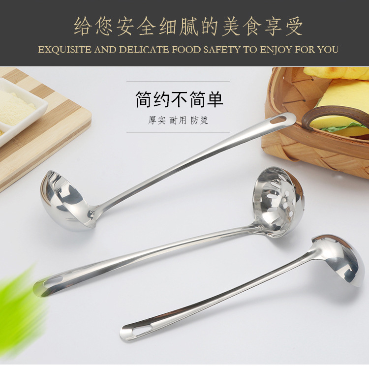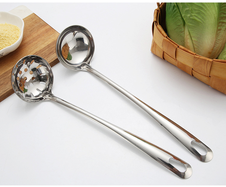 Cuchara de olla caliente, cuchara de acero inoxidable de mango largo engrosado, colador, vajilla de cocina, cuchara de sopa y papilla, juego de mango largo al por mayor