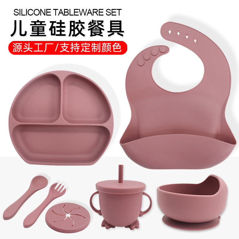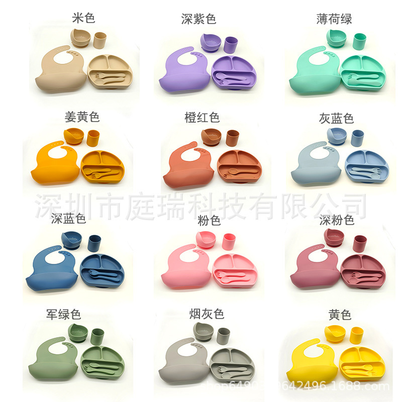 Complemento alimenticio transfronterizo para niños, plato de silicona, plato de suplemento alimenticio para bebés, plato de comida sonriente de seis piezas, vajilla para alimentación maternoinfantil al por mayor