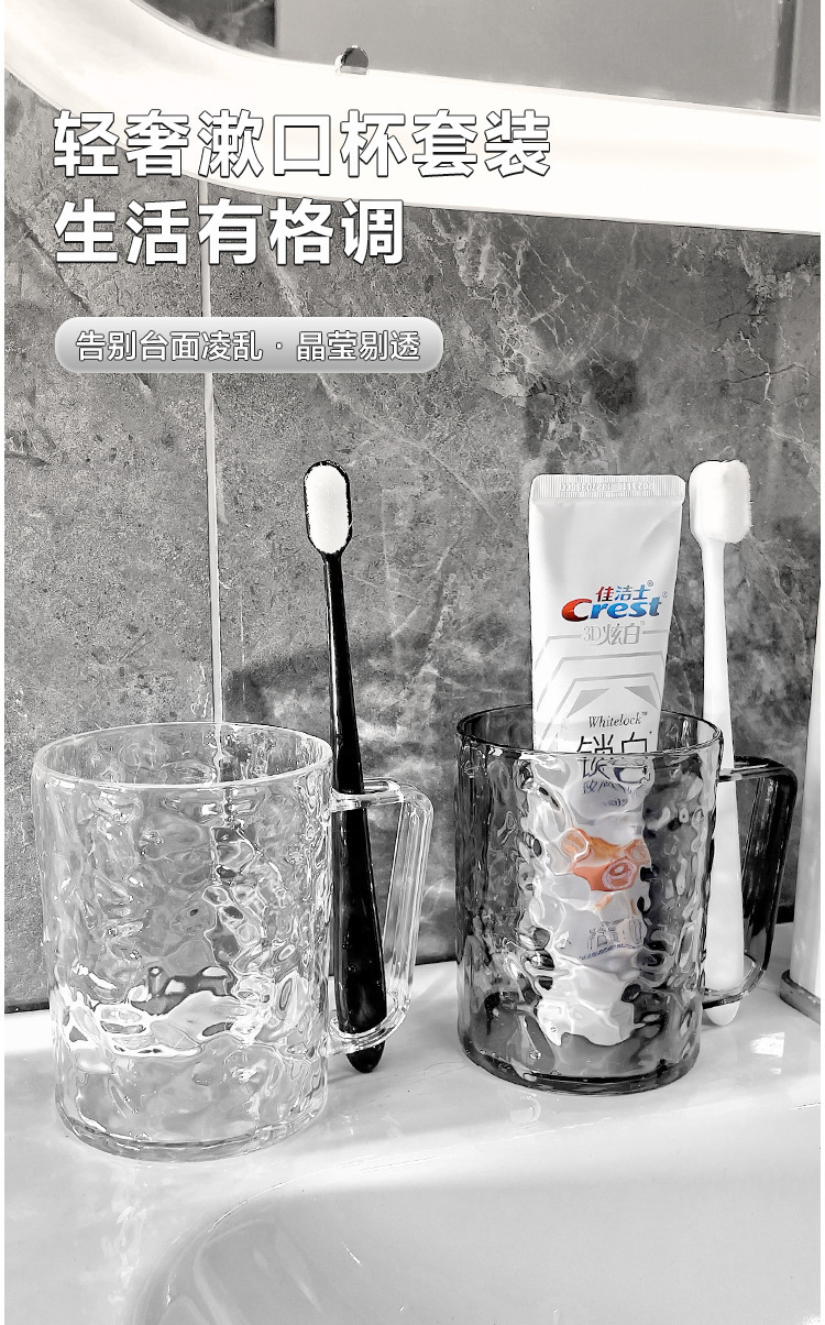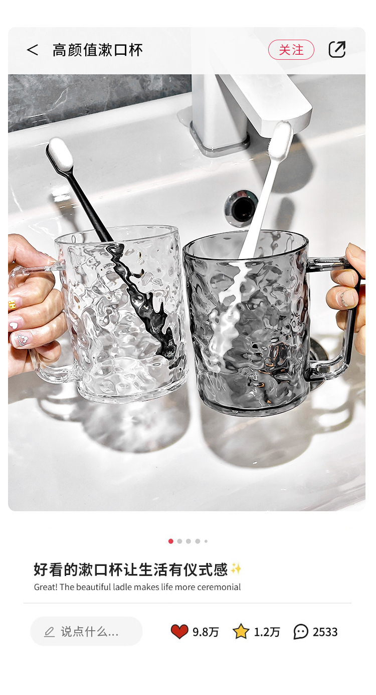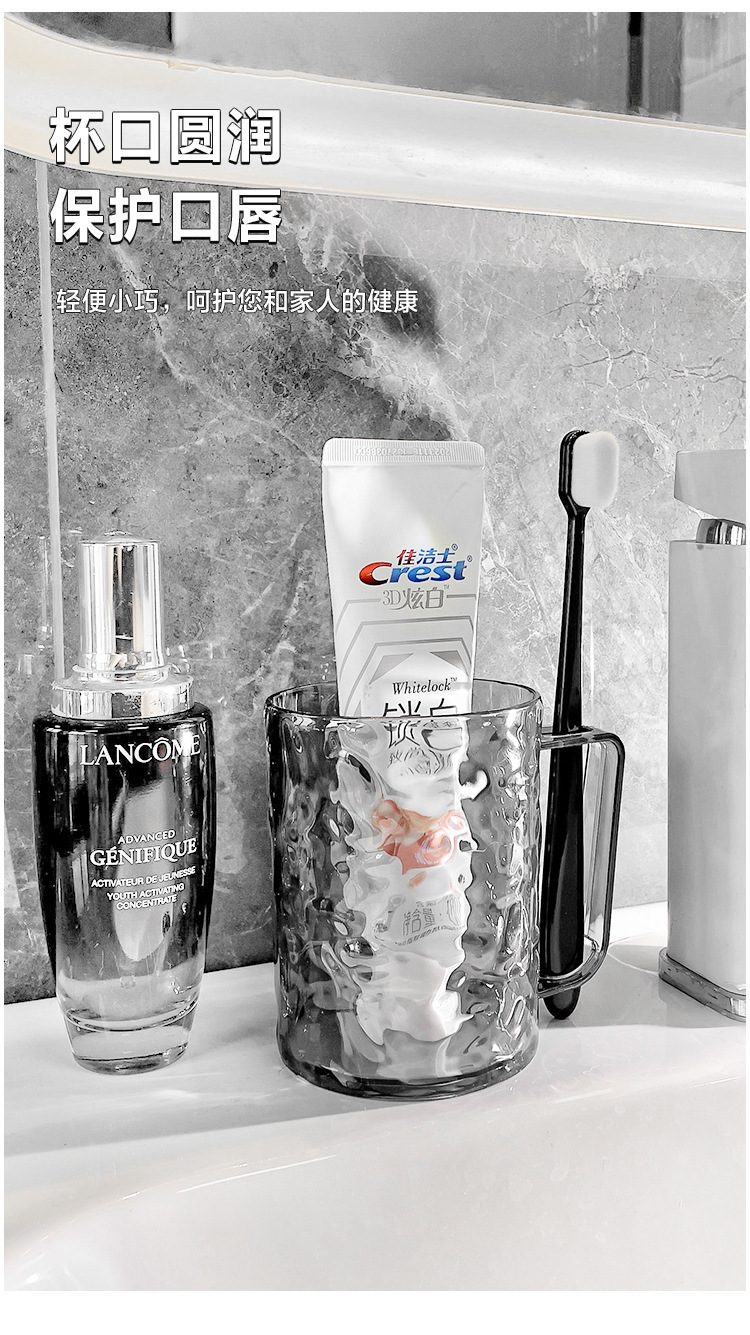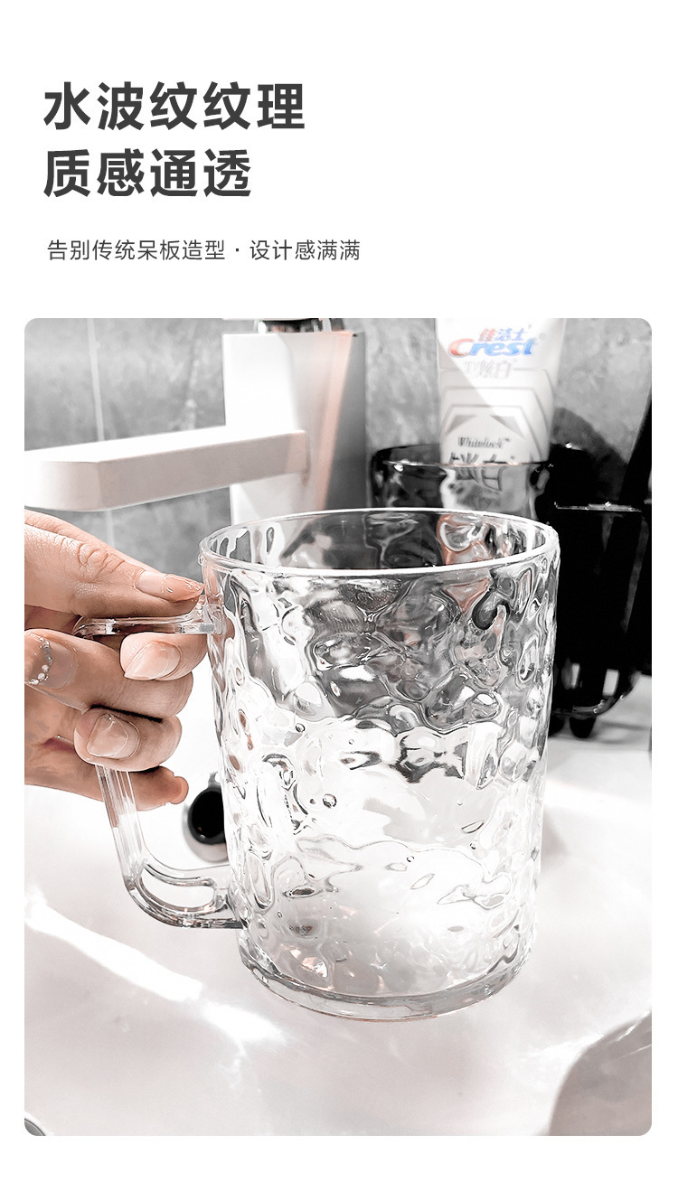 Taza de enjuague de agua ondulada doméstica con mango, taza de cepillo de dientes de alto valor visual, taza de plástico transparente portátil para inodoro