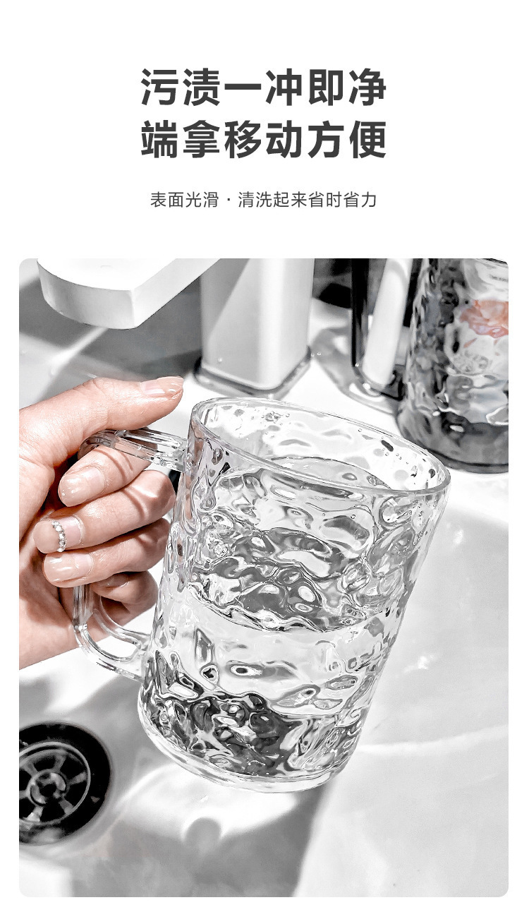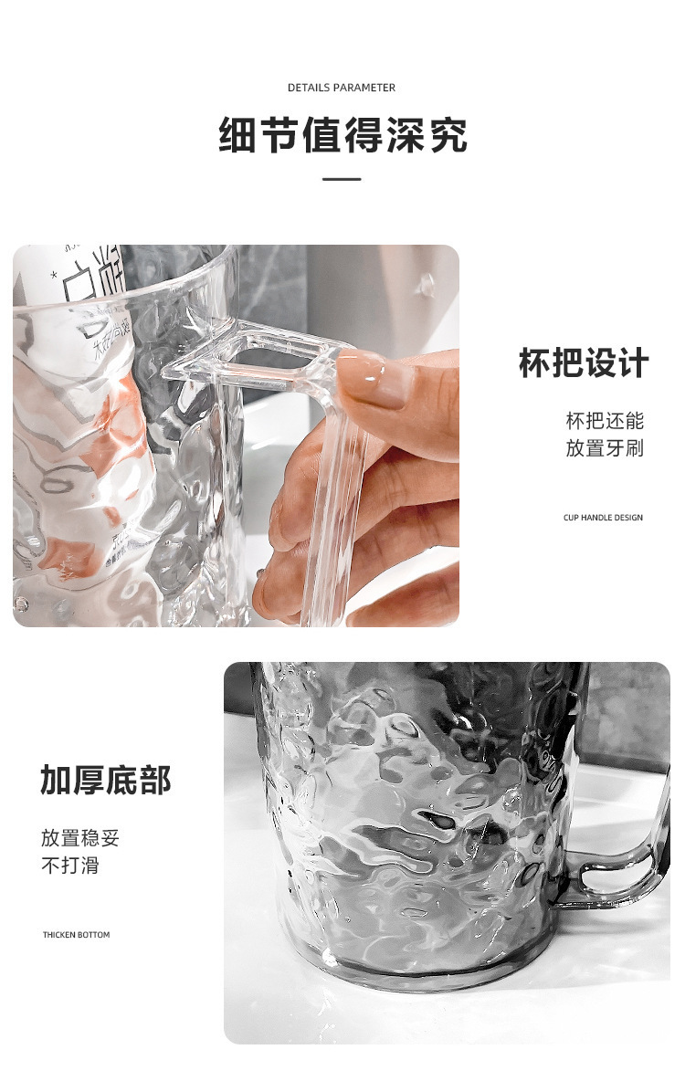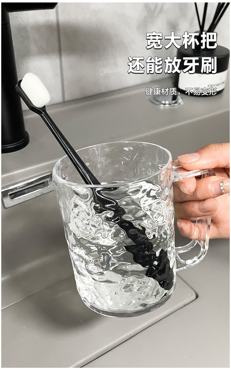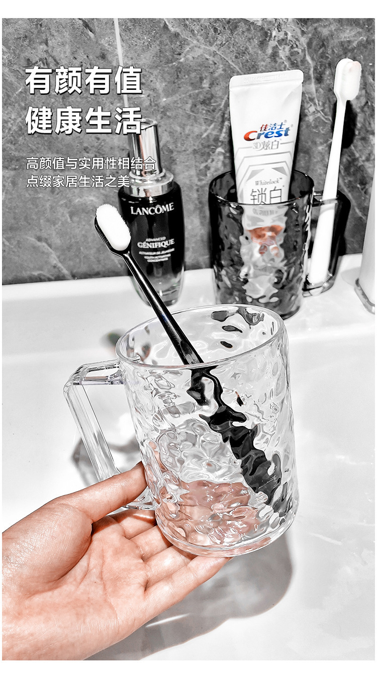 Taza de enjuague de agua ondulada doméstica con mango, taza de cepillo de dientes de alto valor visual, taza de plástico transparente portátil para inodoro