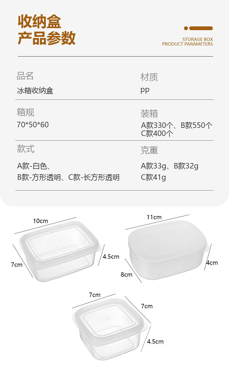 Refrigerador más nítido congelador sellado grado alimenticio PP sub-embalaje almacenamiento pequeño tamaño plástico Mini caja de sub-embalaje de alimentos