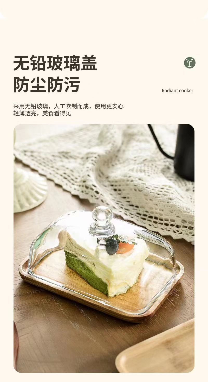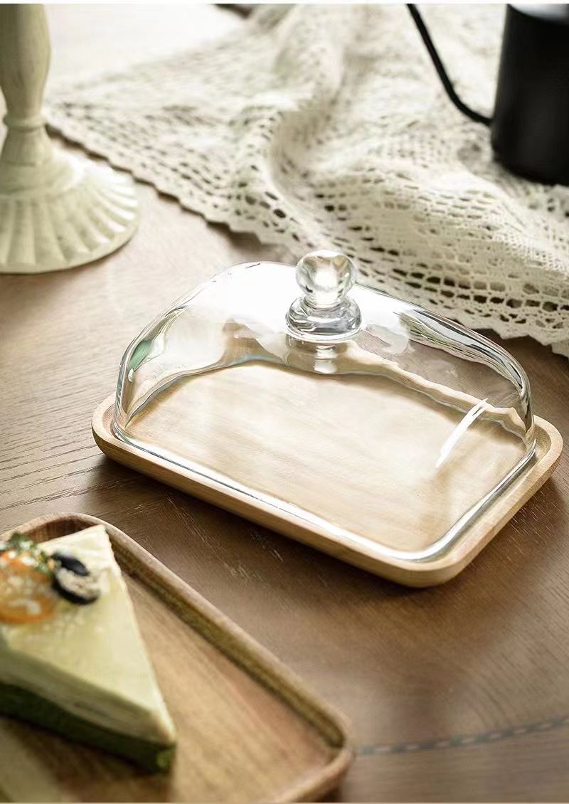 Bandeja de postre de madera de acacia (cubierta de vidrio)