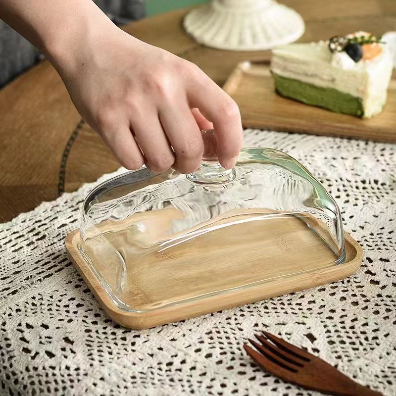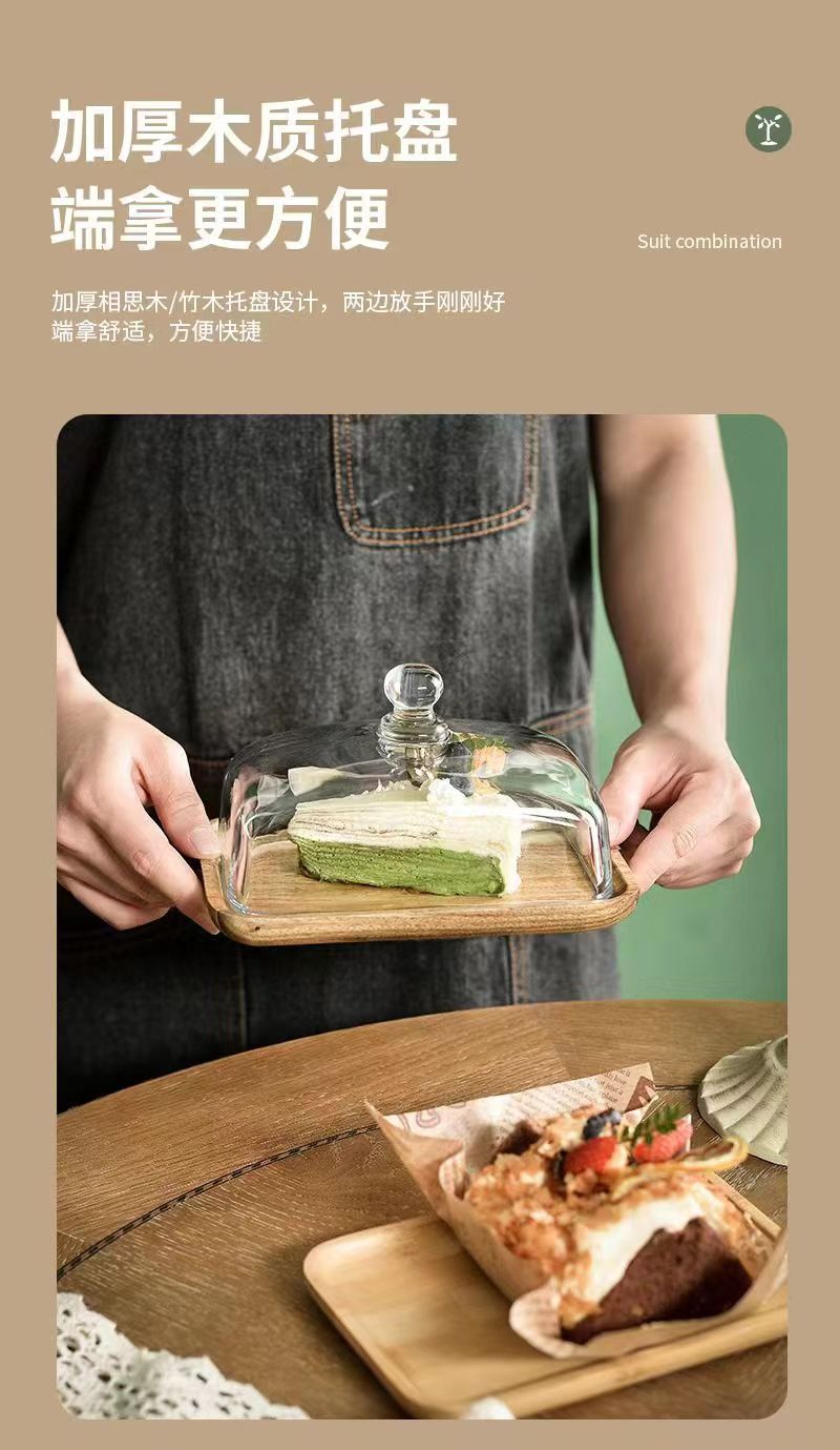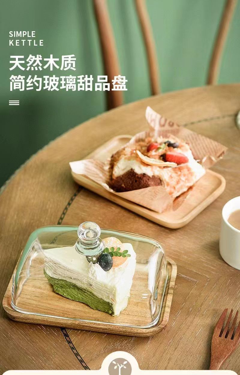 Plato de pastel de bambú transfronterizo de madera placa de visualización de vidrio transparente dulces pasteles plato de comida occidental plato de mesa bandeja de madera de aguacate
