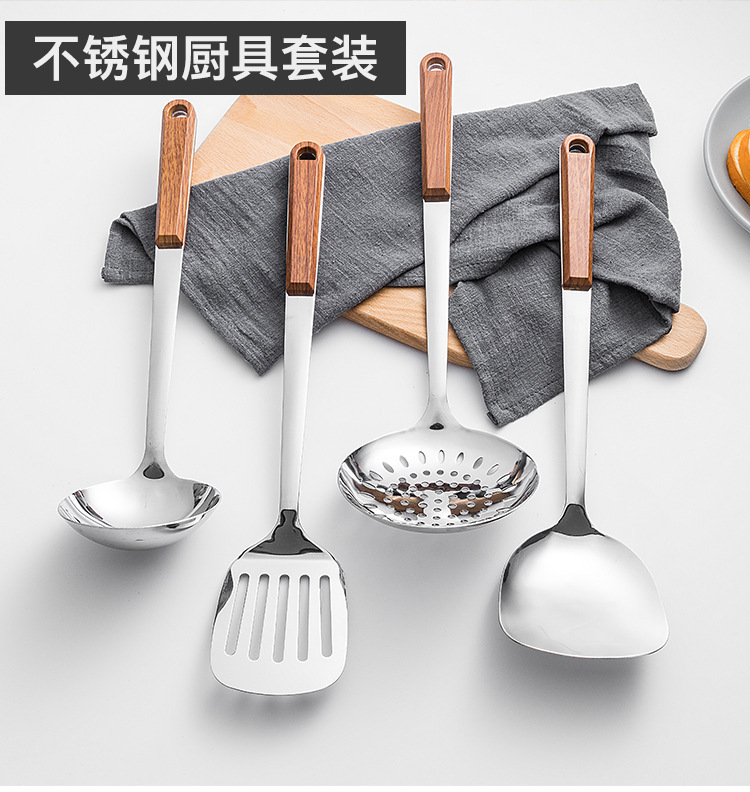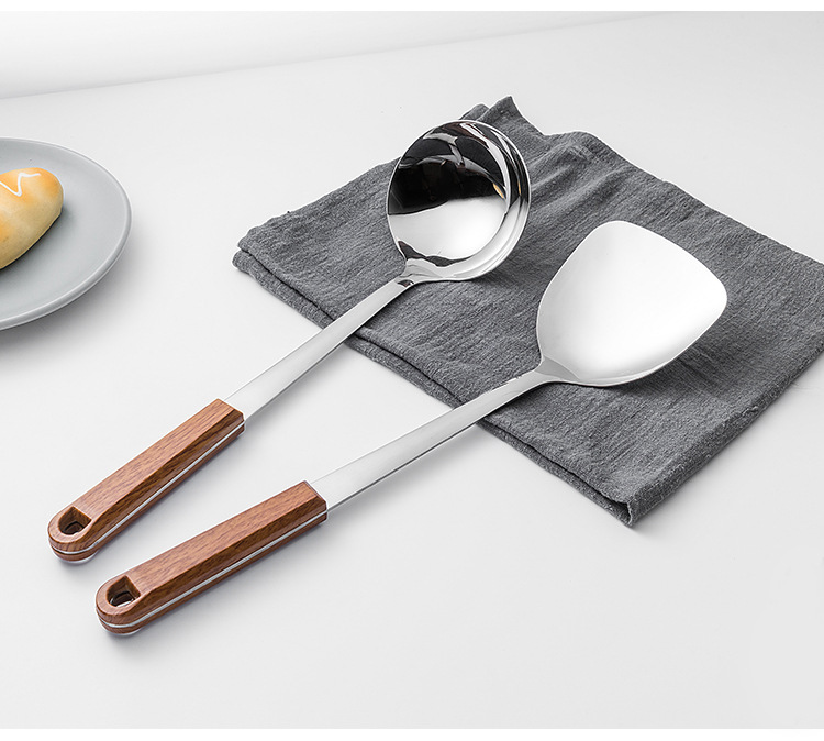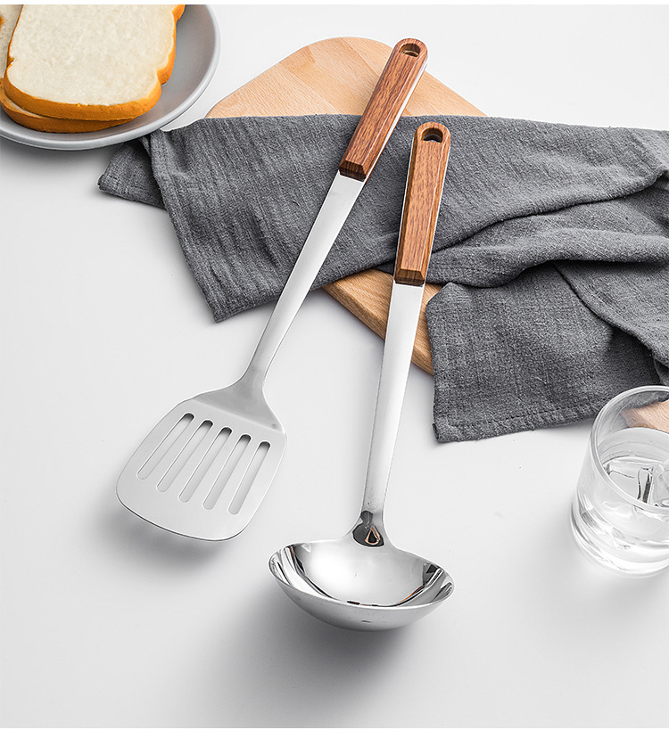 Espátula de acero inoxidable, cuchara de cocina, fideos de cocina, espátula para freír, espátula para el hogar, colador, juego de cuchara para sopa