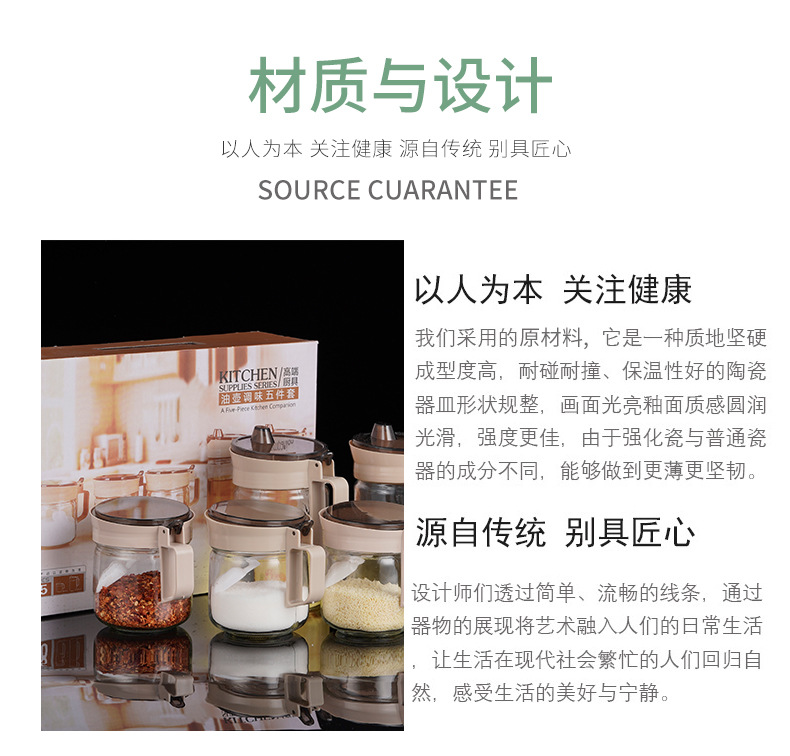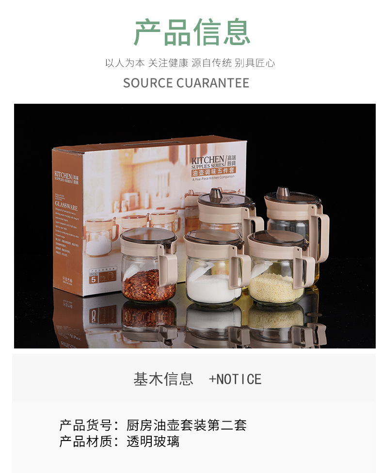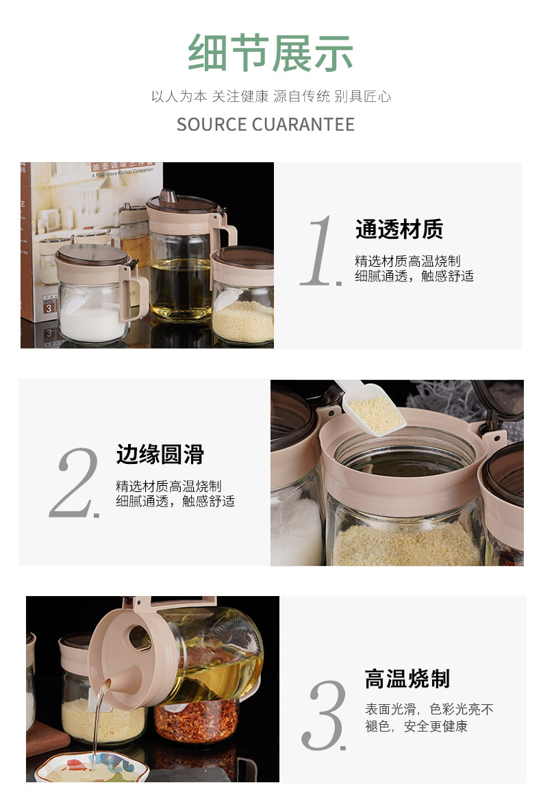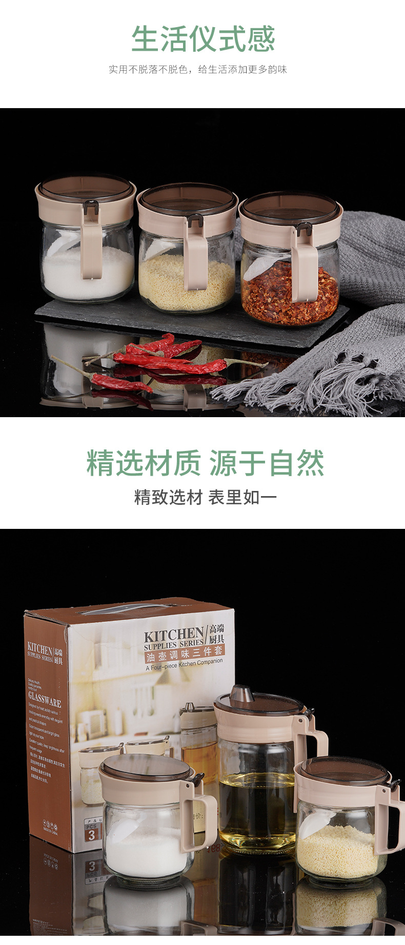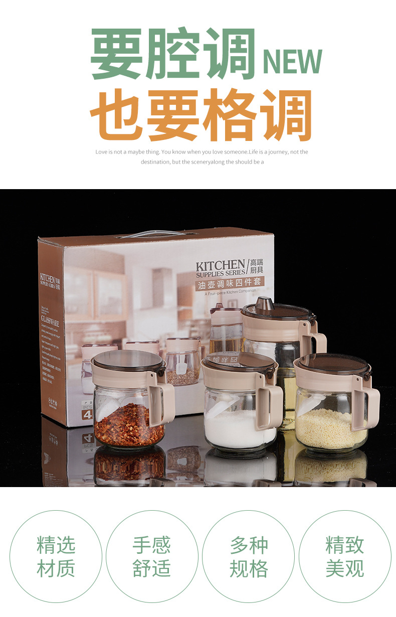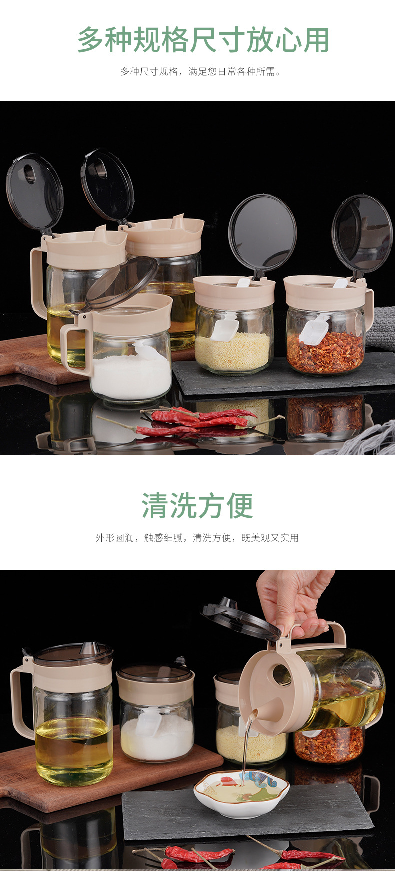 Tarro de condimento de vidrio de cocina traje de hogar integrado frasco de sal sellado con tapa frasco de botella de condimento con cuchara
