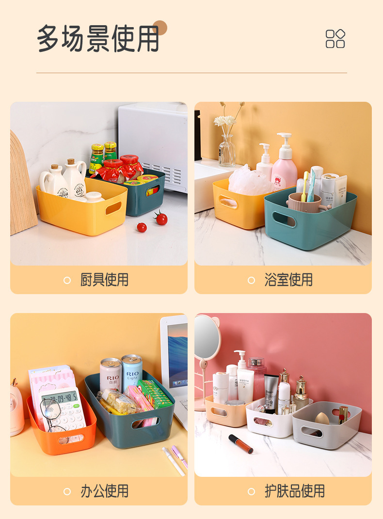 Hogar caja de almacenamiento escritorio cocina cosméticos gran capacidad plástico descubierto organización cesta al por mayor