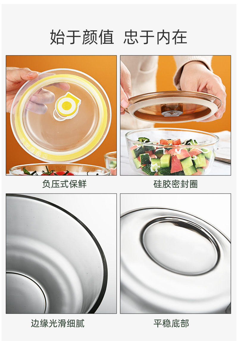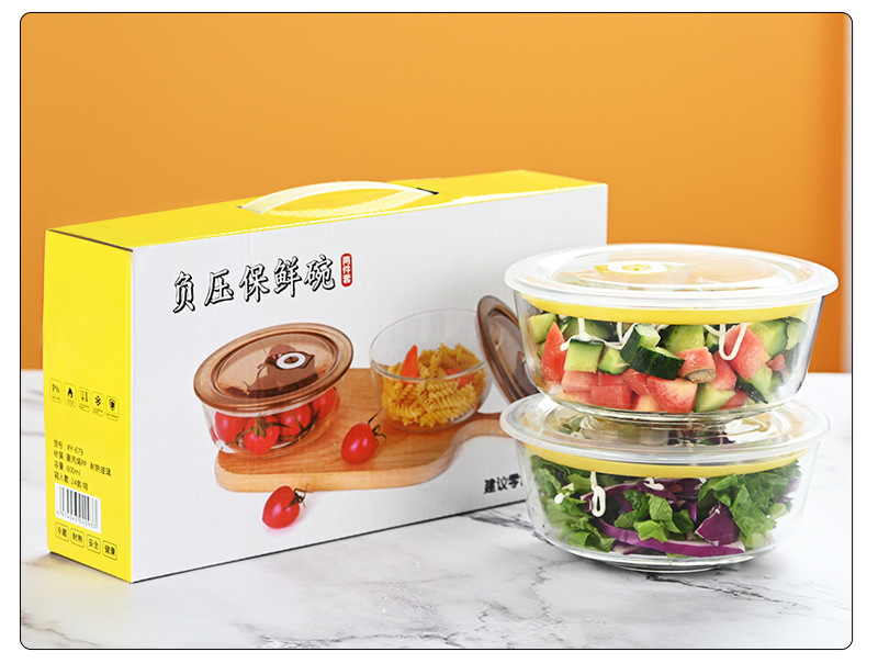 Presión negativa fresco-mantenimiento cuenco tazón de vidrio refrigerador sellado tazón de regalo tazón conjunto caja de regalo apertura actividad regalo al por mayor