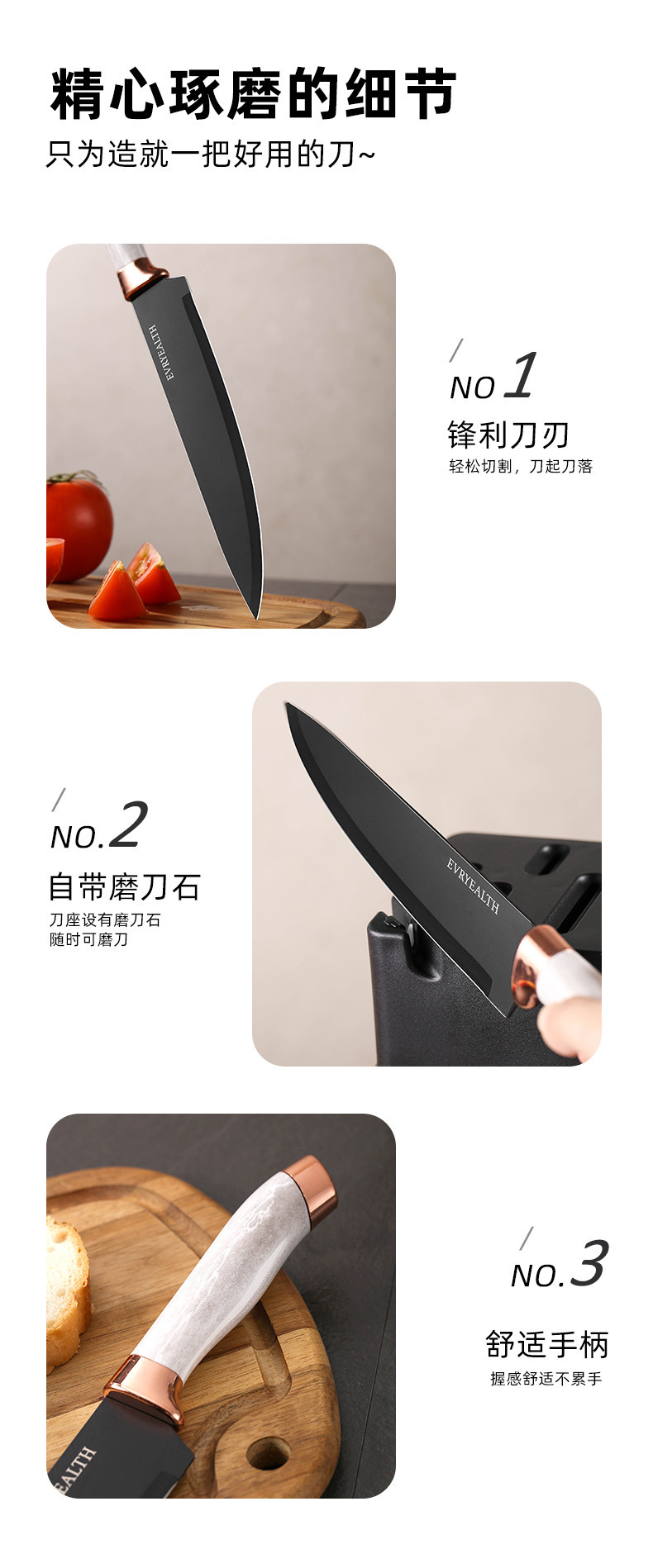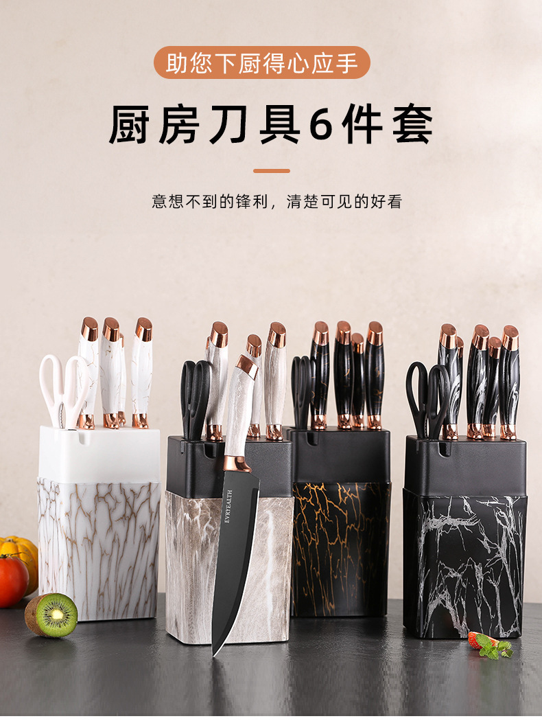 Fábrica directa de mármol doble cabeza galvanizada siete piezas cuchillo cuadrangular de cocina cuchillo de acero inoxidable conjunto al por mayor