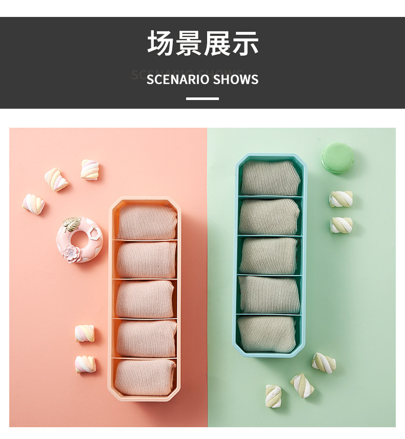 Caja de almacenamiento de calcetines, caja de acabado de ropa interior multifuncional de dormitorio dividido de plástico para el hogar, caja de almacenamiento de escritorio engrosada