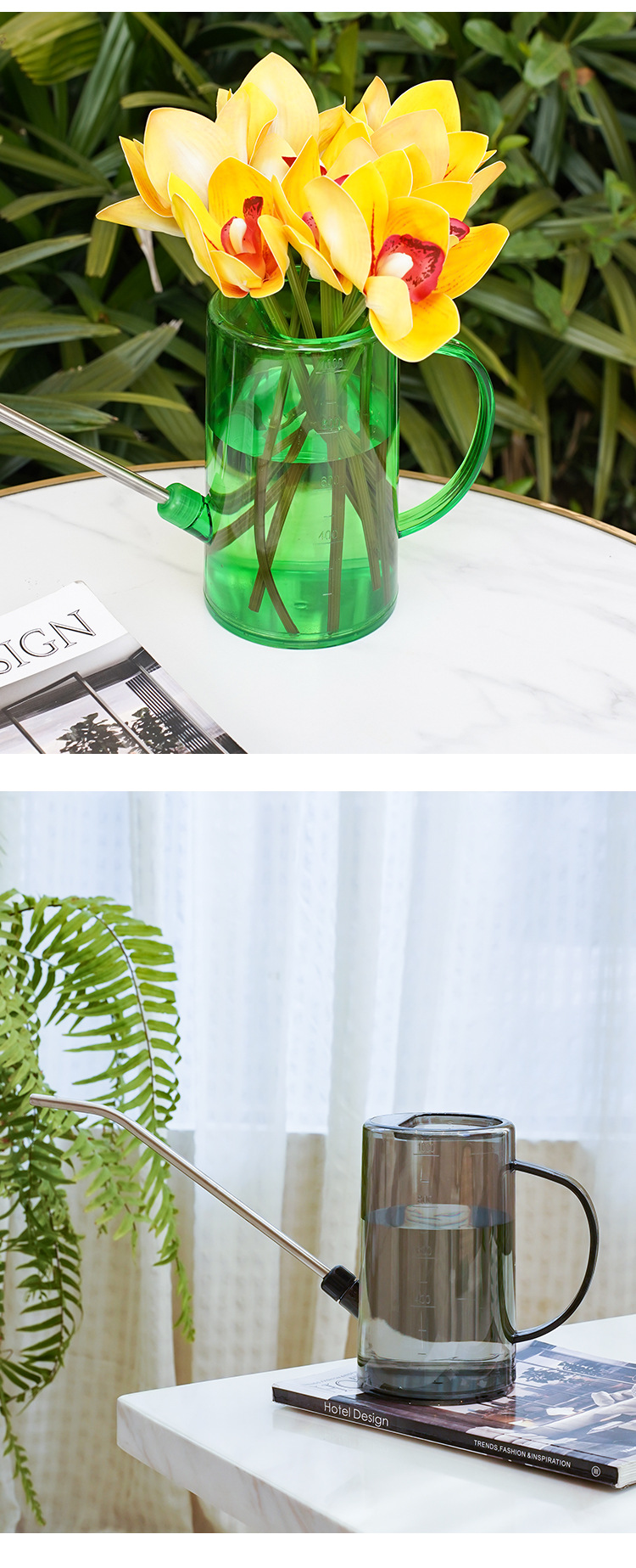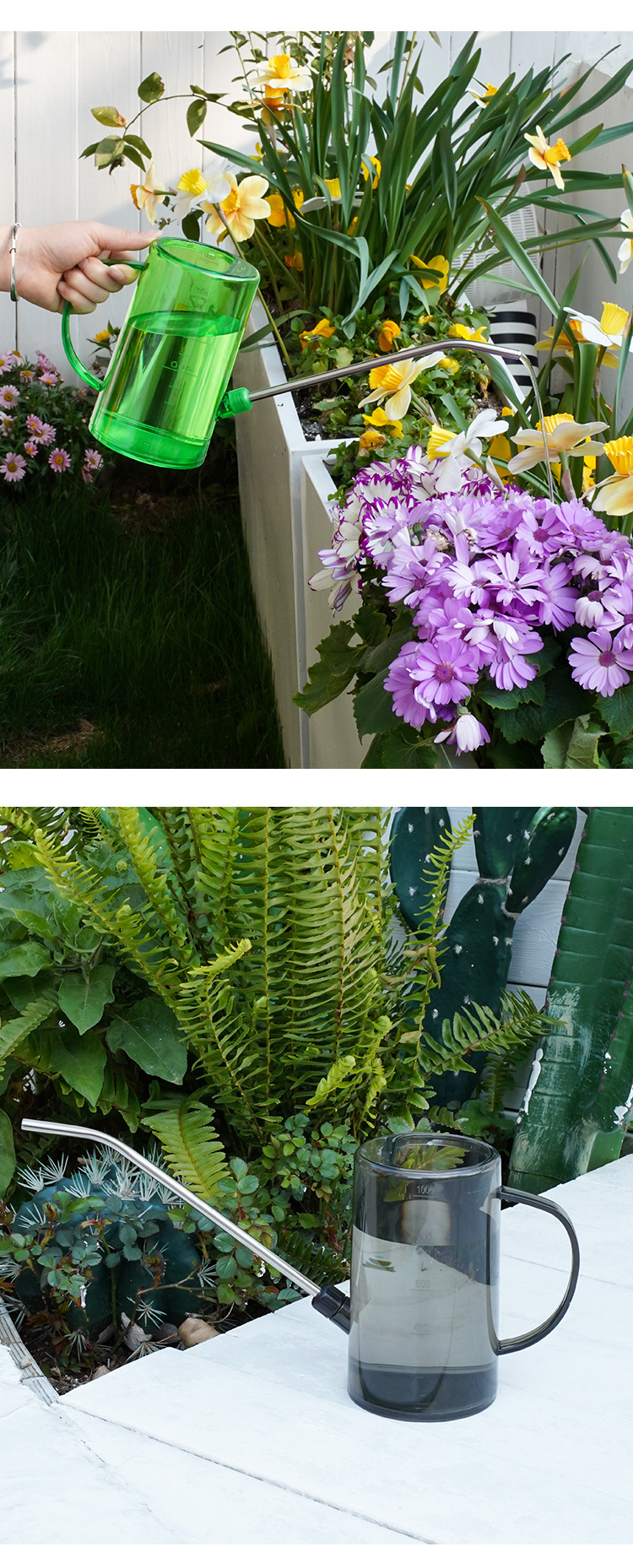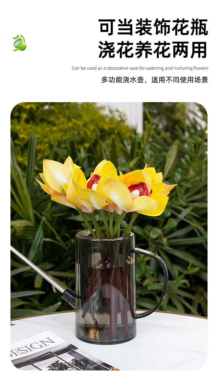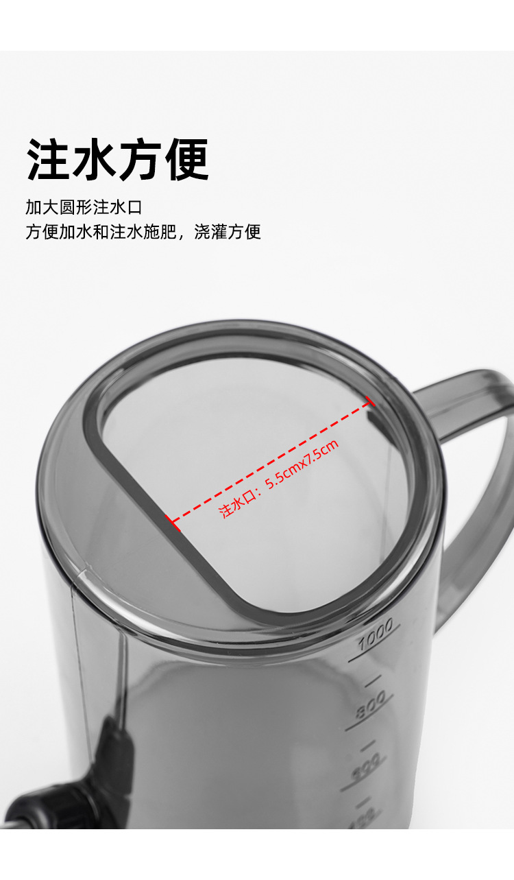 Botella de riego de boca larga de acero inoxidable, botella de riego doméstica, herramienta de jardinería de escala transparente de maceta de plantación verde