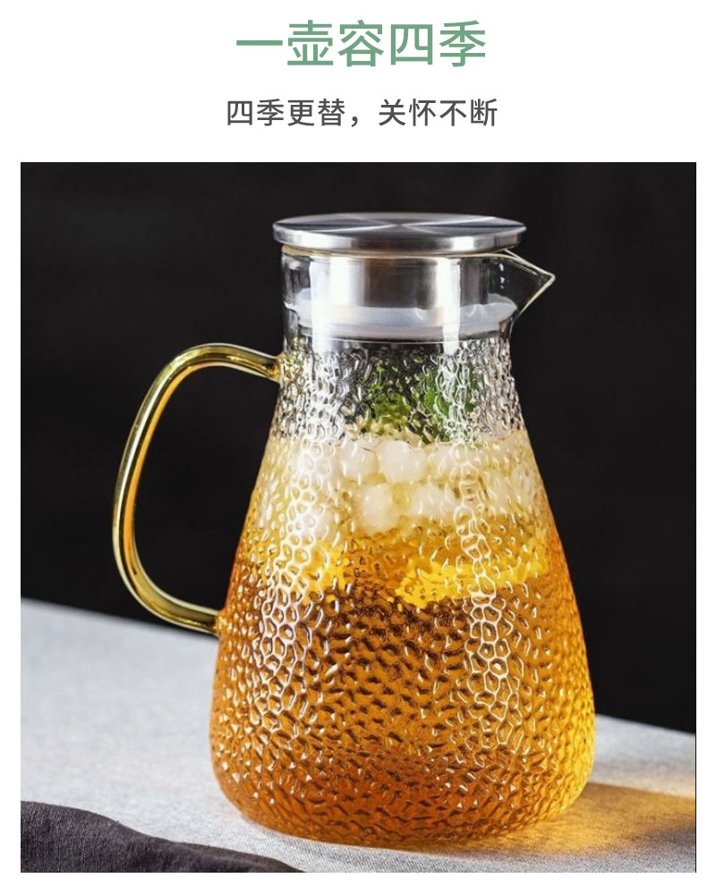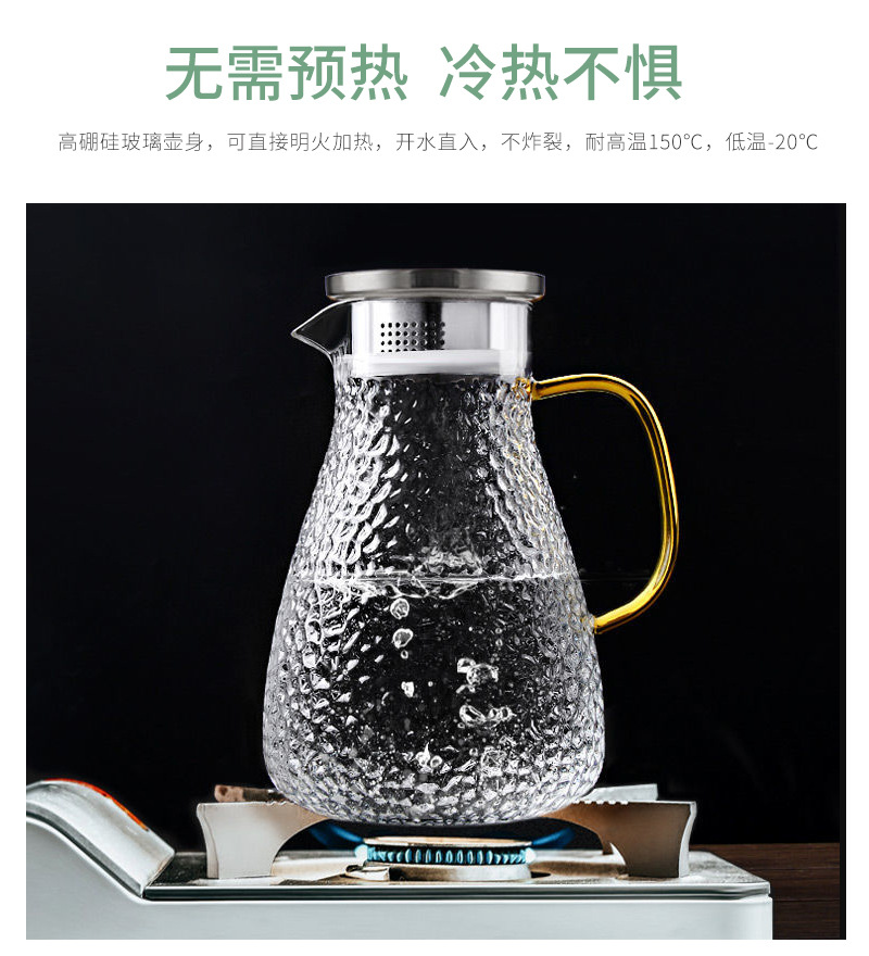 Traje de hervidor de vidrio martillado grueso de borosilicato al por mayor resistente al frío resistente al calor hogar calentado hervidor de agua frío de gran capacidad