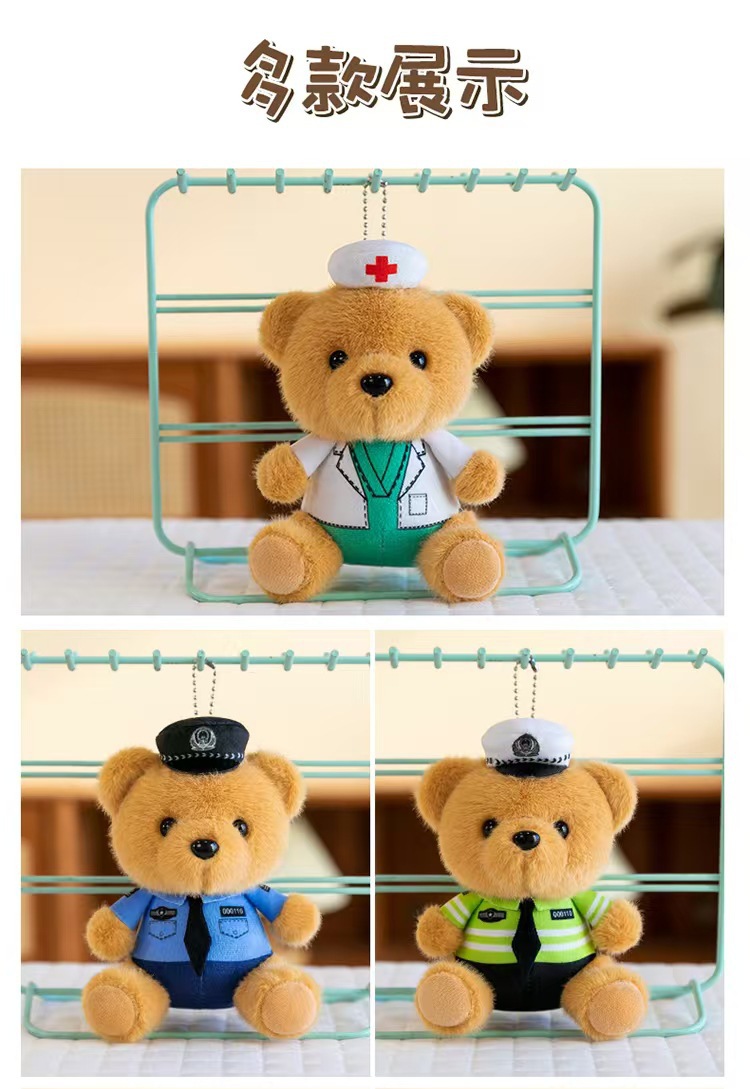 Policía de bomberos en línea oso muñeca colgante muñeca montada en hierro juguetes de peluche oso Teddy colgante de policía de tráfico llavero