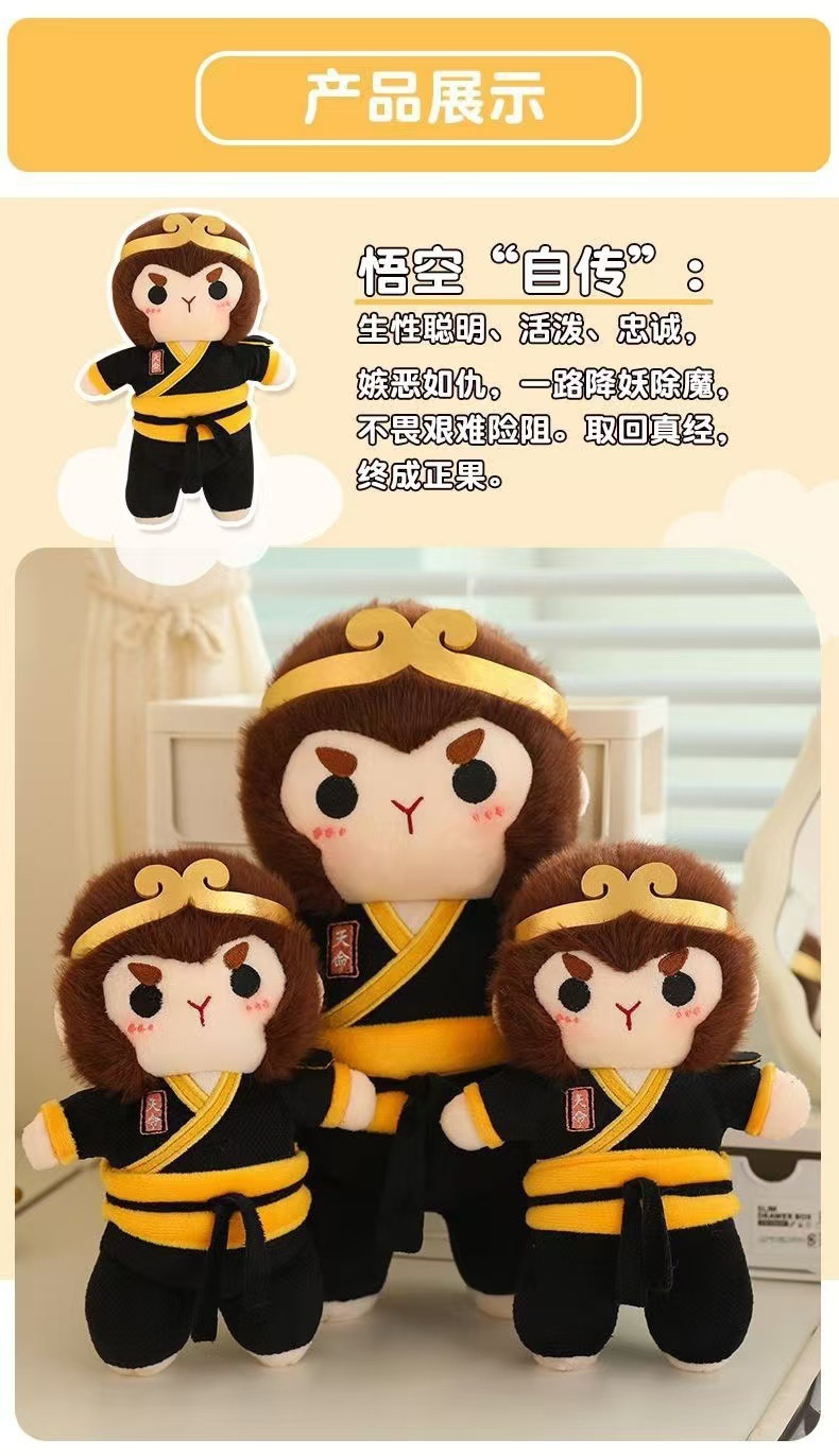 Caricatura encantadora muñeca negra Goku juguetes de peluche viaje al oeste muñeca monkey regalo de vacaciones almohada para niños