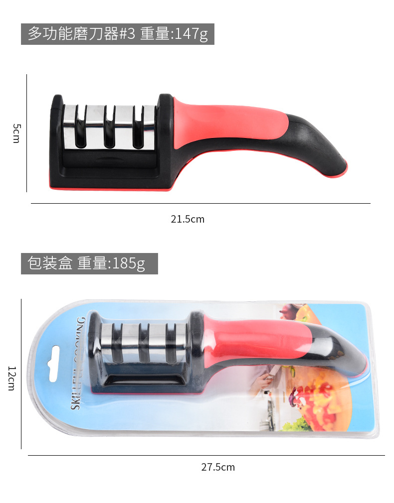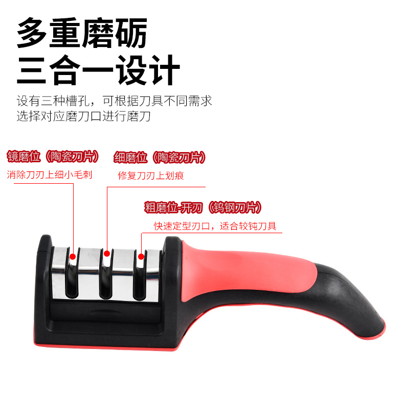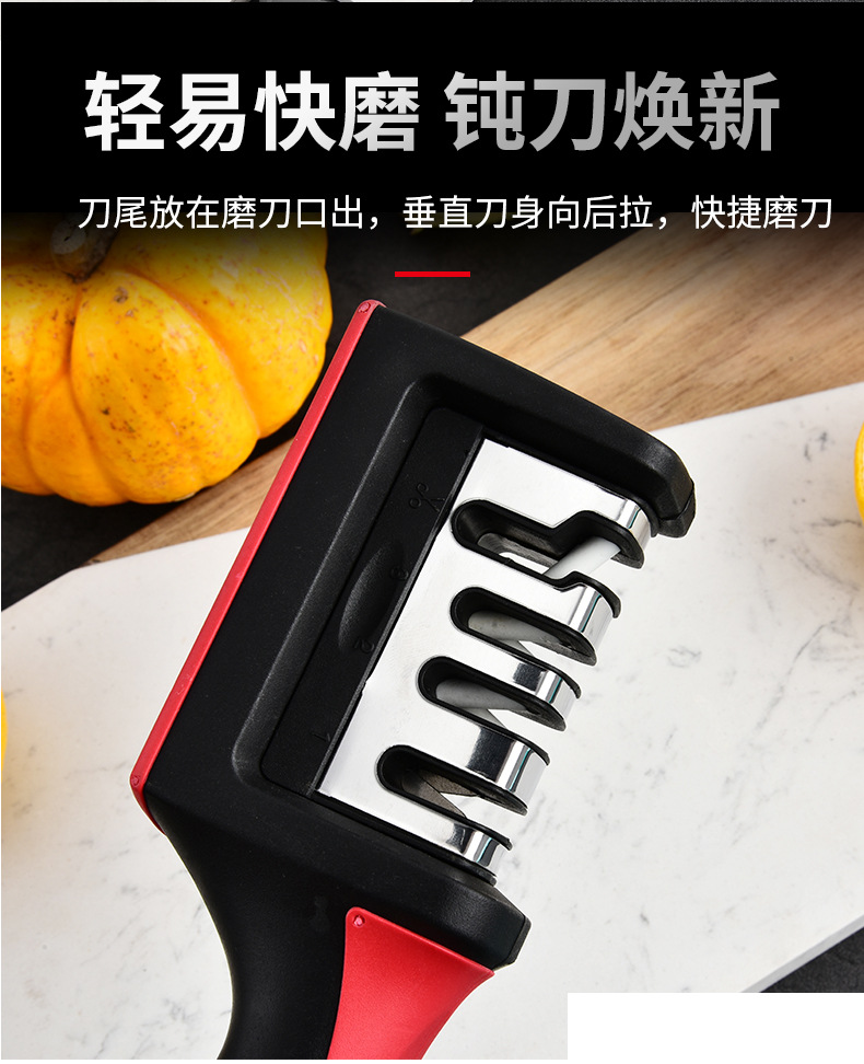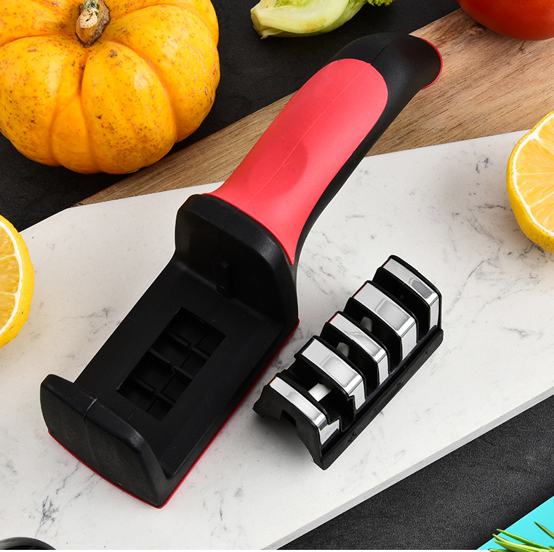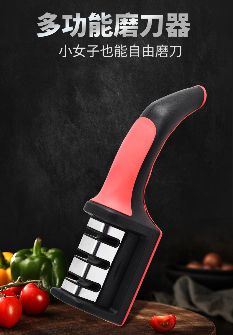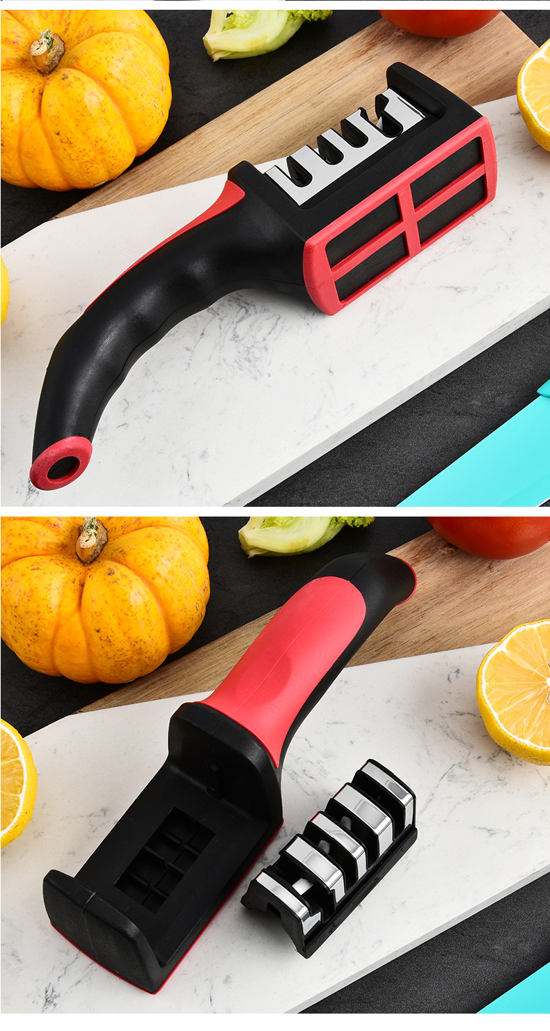 Fábrica mayorista de acero inoxidable doméstico multifuncional tres o cuatro piezas afiladora de cuchillo de cocina manual afiladora
