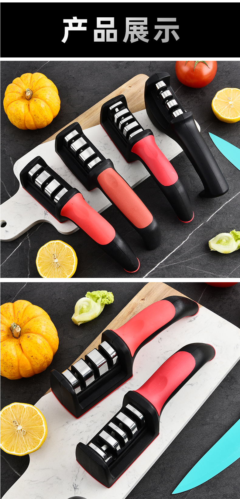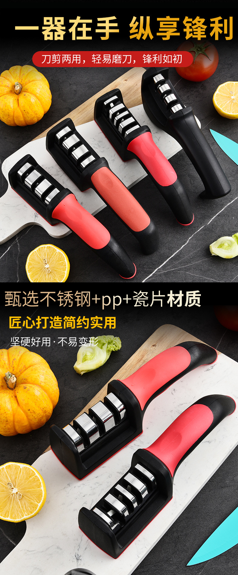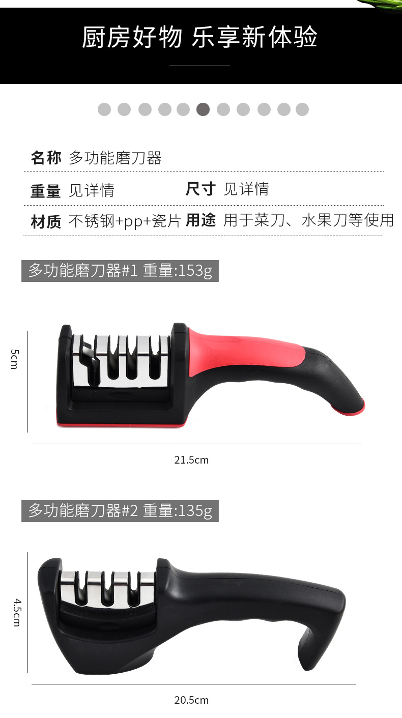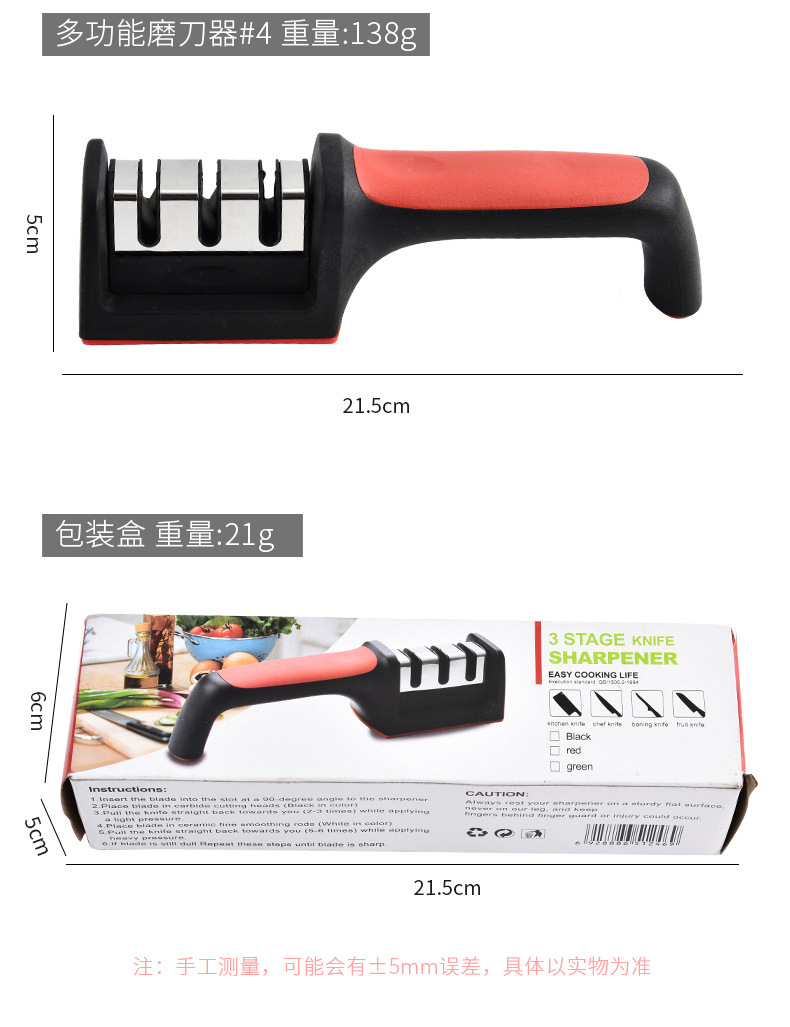 Fábrica mayorista de acero inoxidable doméstico multifuncional tres o cuatro piezas afiladora de cuchillo de cocina manual afiladora