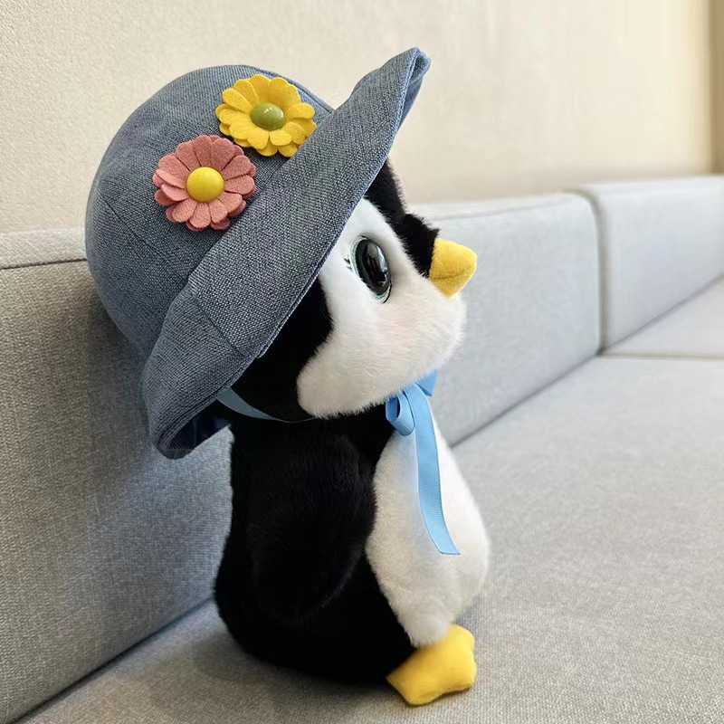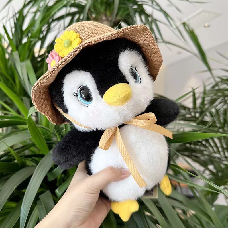 Bonito sombrero pingüino juguete de peluche 11CM animales pequeños pingüinos niños regalo de cumpleaños muñeca agarra