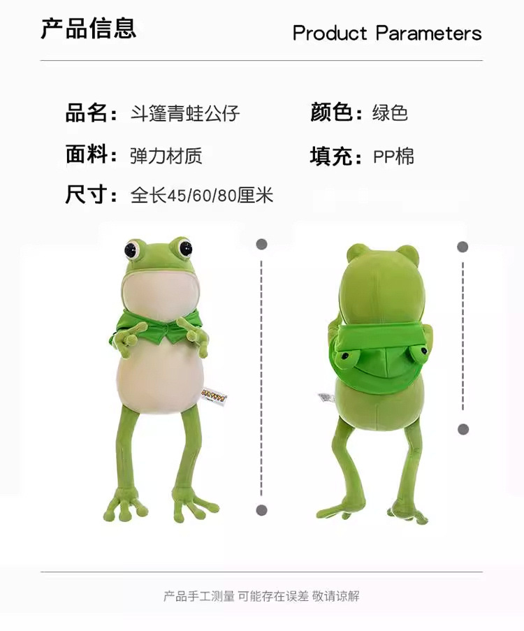 Capa, ranas de dibujos animados, muñecas de peluche, muñecas lindas, juguetes para niños, regalos para niñas, nuevos en stock al por mayor