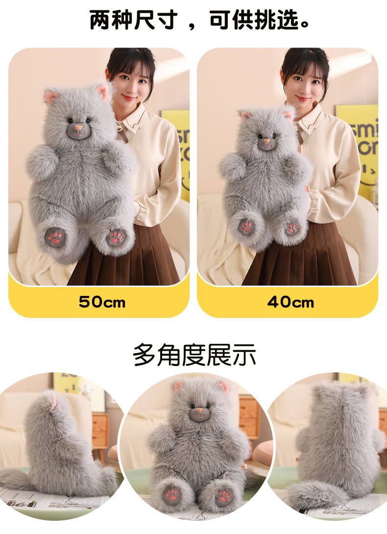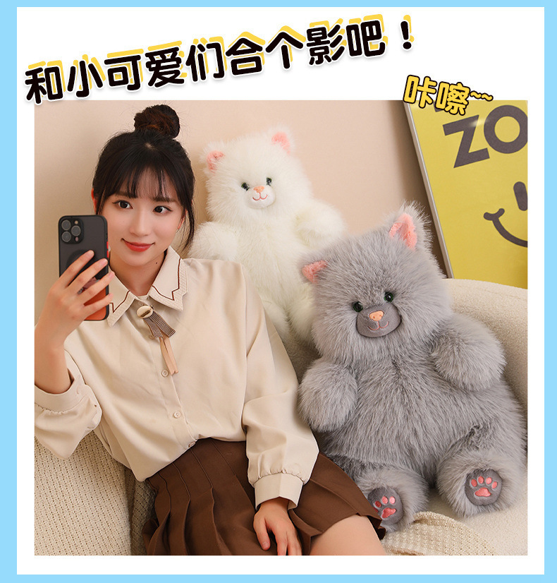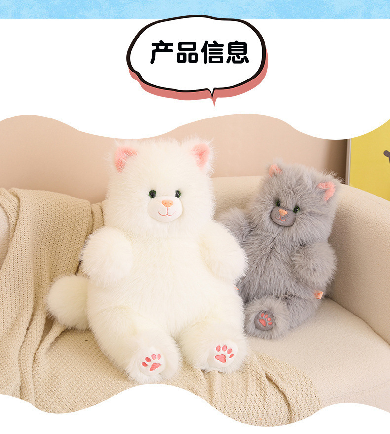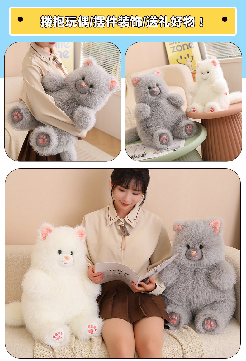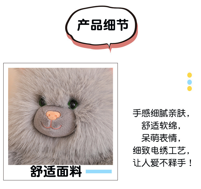 Juguete de peluche de gato de azúcar suave y lindo, muñeca de gato de pelo largo, regalo de cumpleaños para niña, almohada de cama para niños