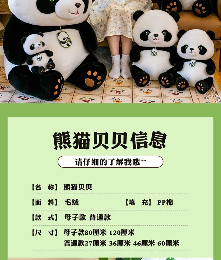 Panda beibei muñeca almohada dibujos animados Panda gigante muñeca grande peluche cojín de juguete agarrar máquina muñeca al por mayor