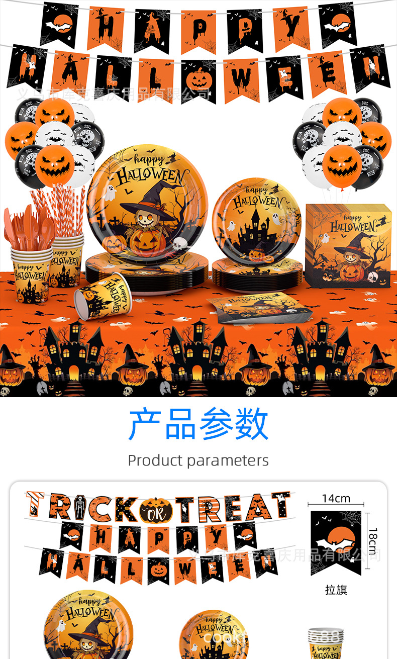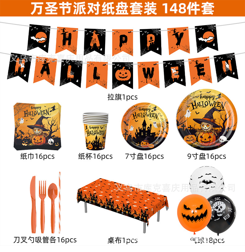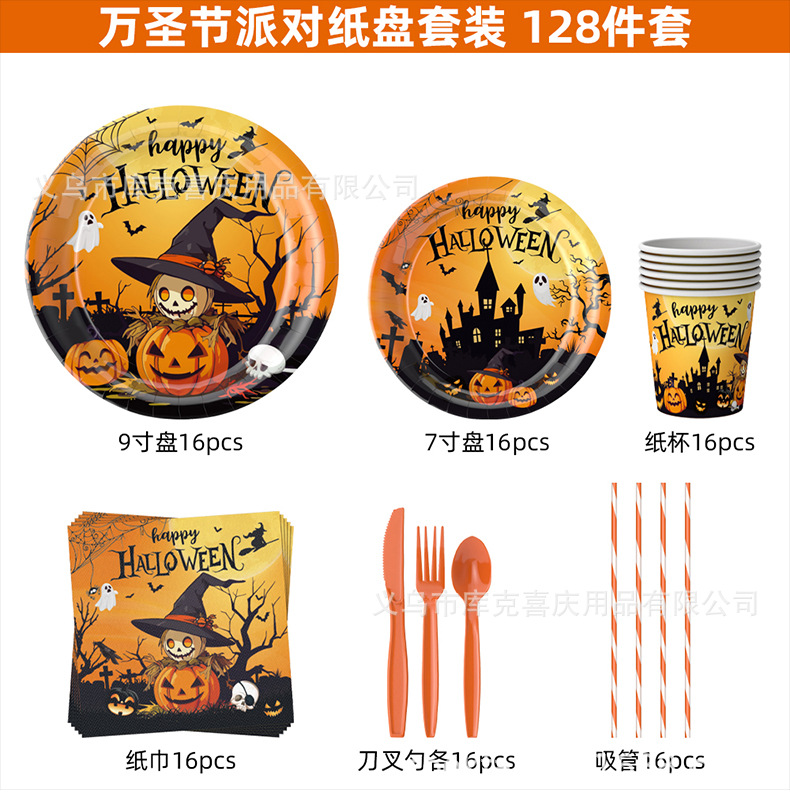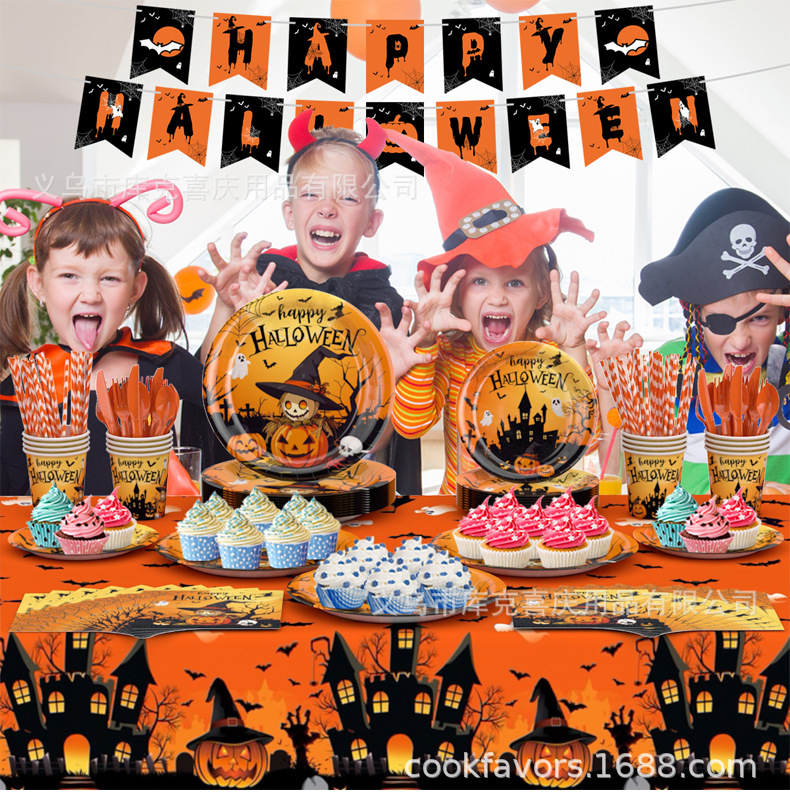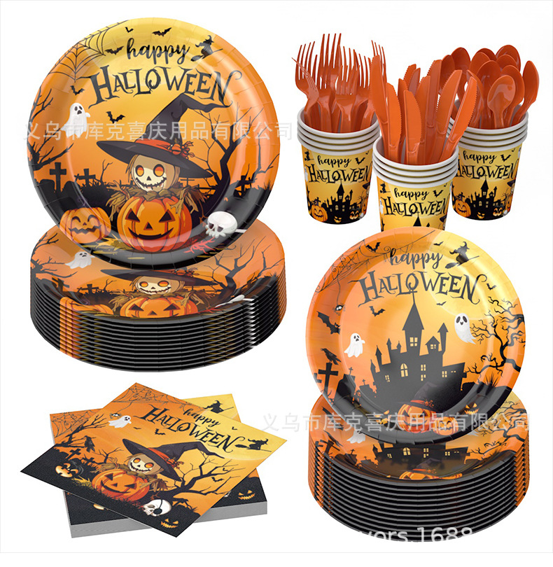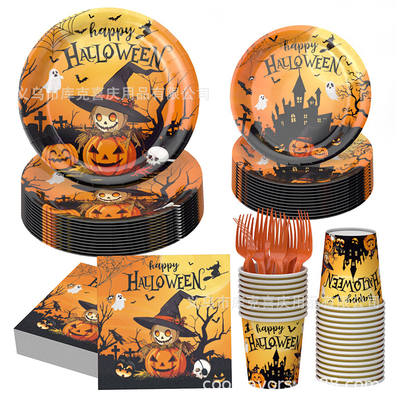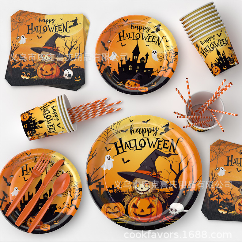 2025 Halloween calabaza fantasma fiesta decoración decoración festival fantasma bandeja de papel desechable vaso de papel toalla de papel juego de vajilla