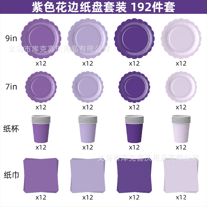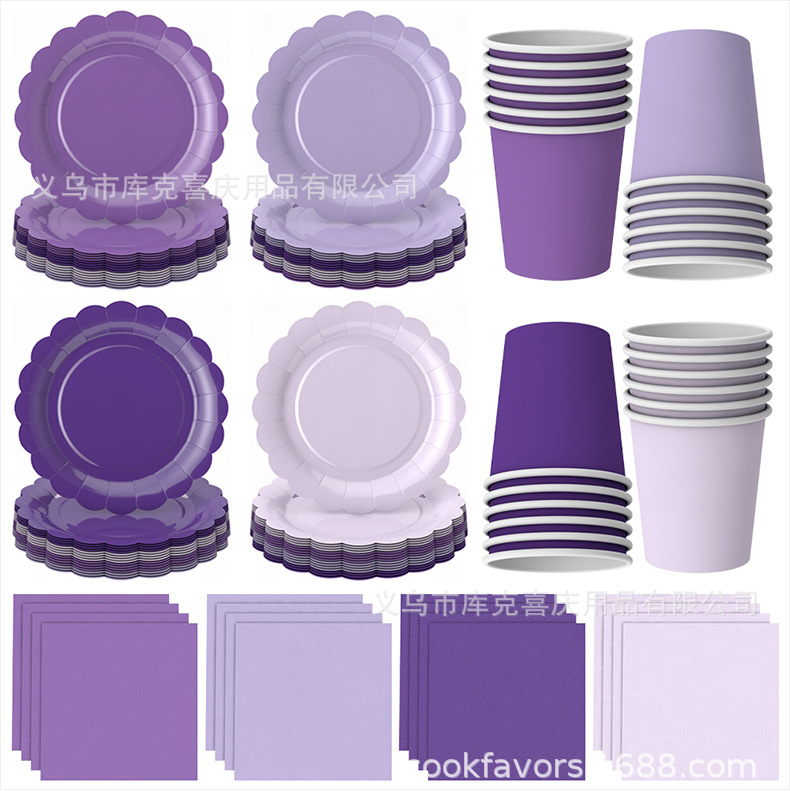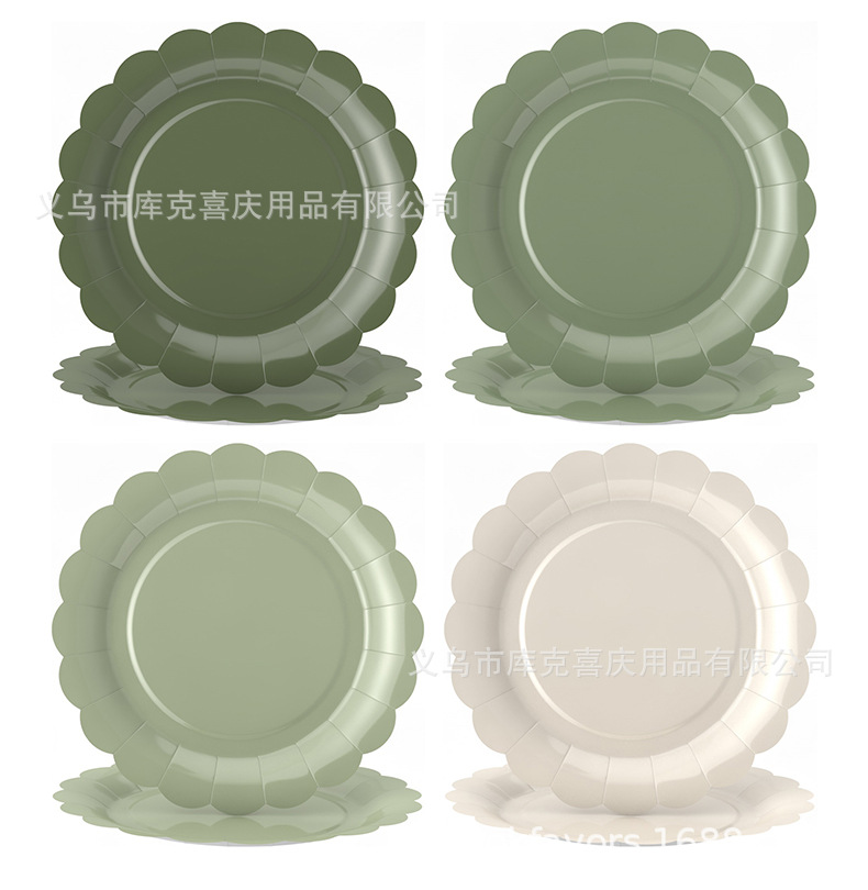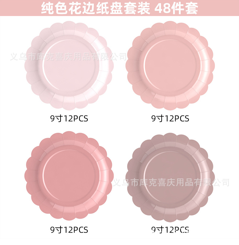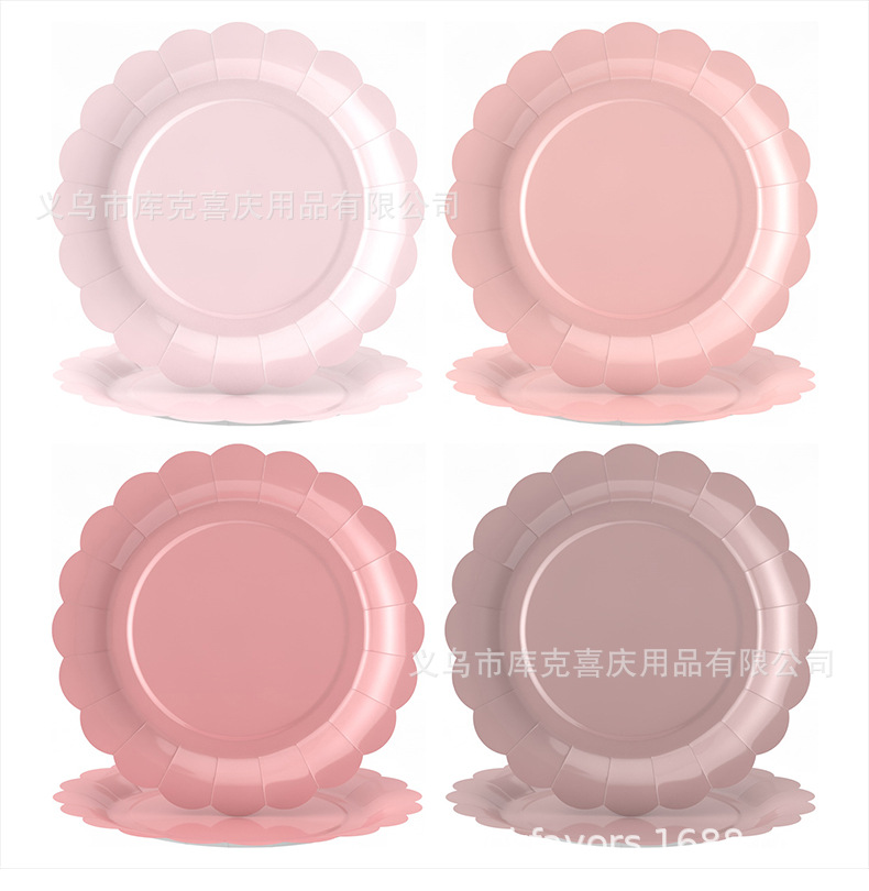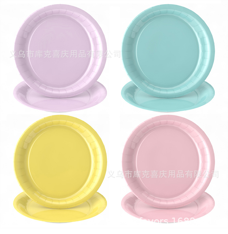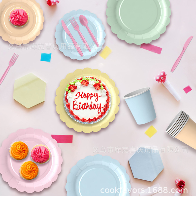 Nuevo macarón de encaje de color fiesta bandeja de papel de cumpleaños de color sólido bandeja de papel desechable tazas de papel toallas de papel set de cubiertos