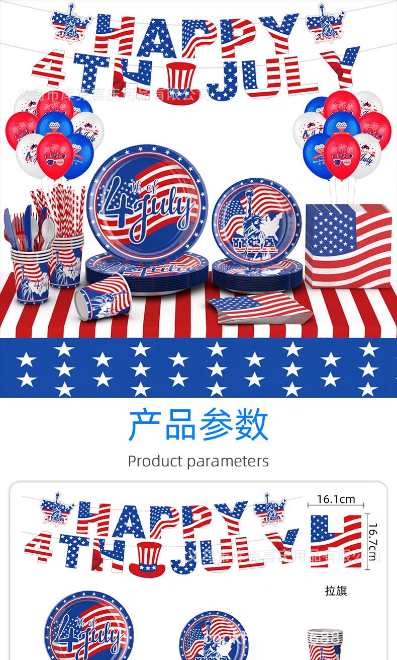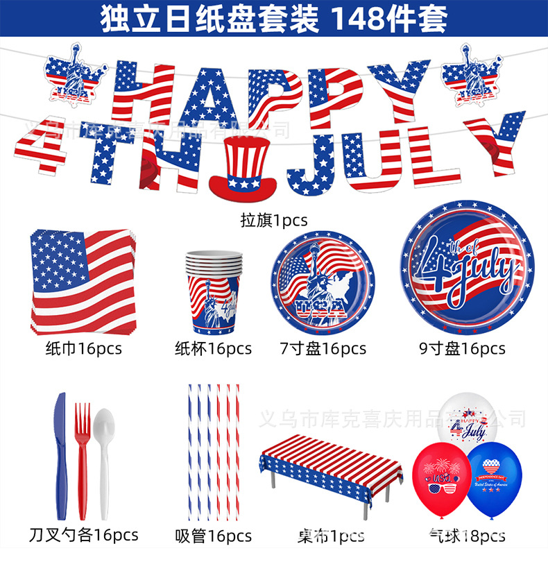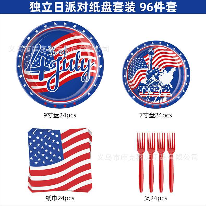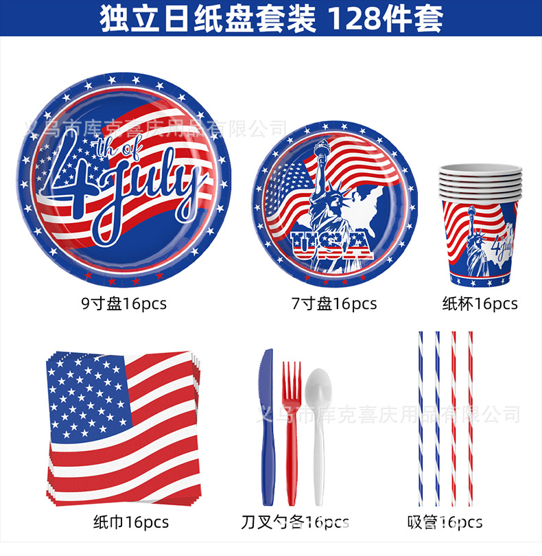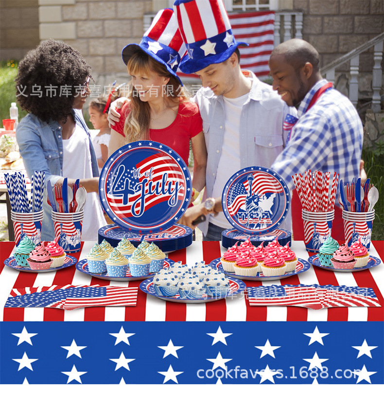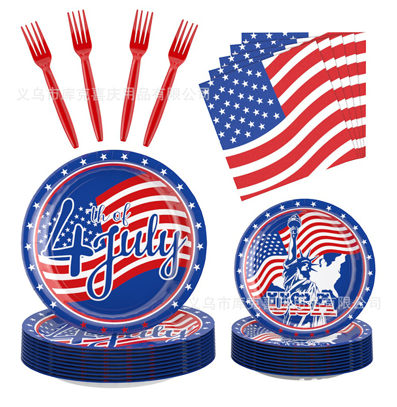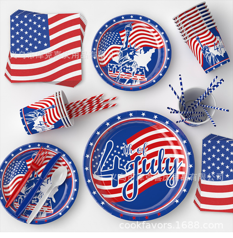 Día de la Independencia Fiesta temática de la bandera estadounidense Bandeja de papel Vaso de papel Toalla de papel Juego de vajilla Día de la Independencia Decoración de la fiesta