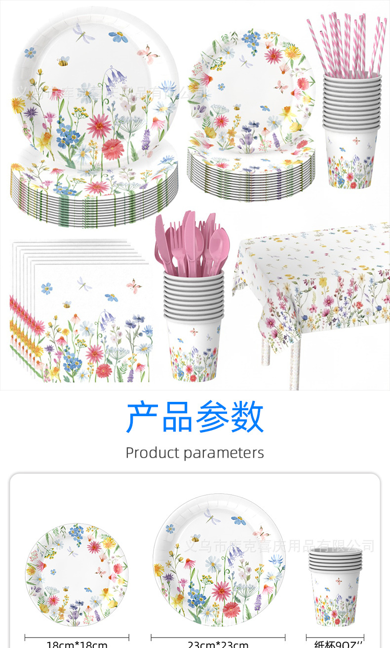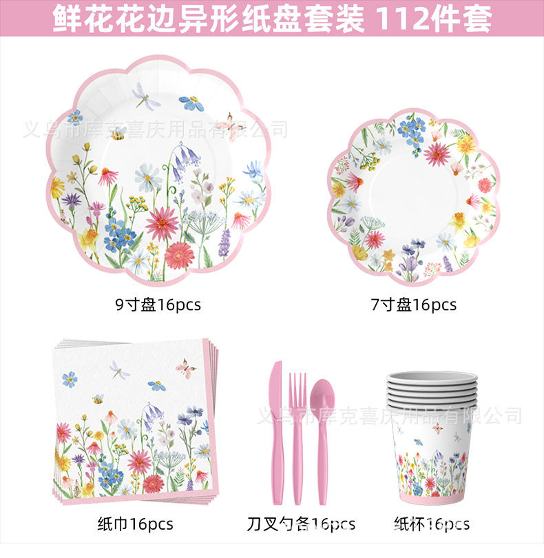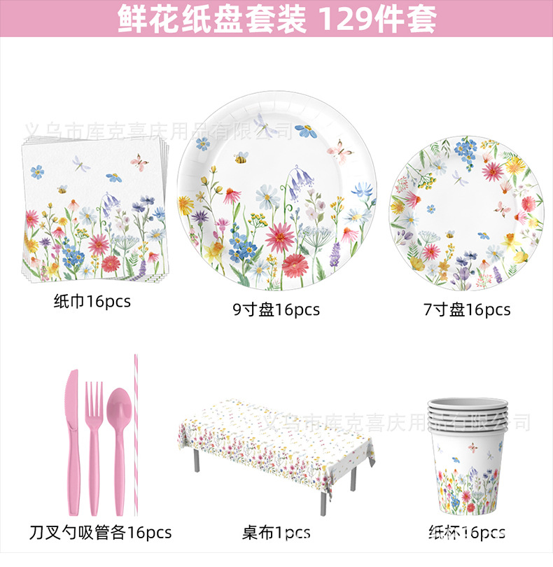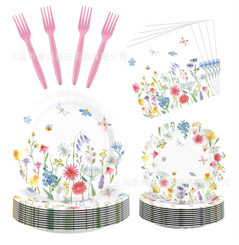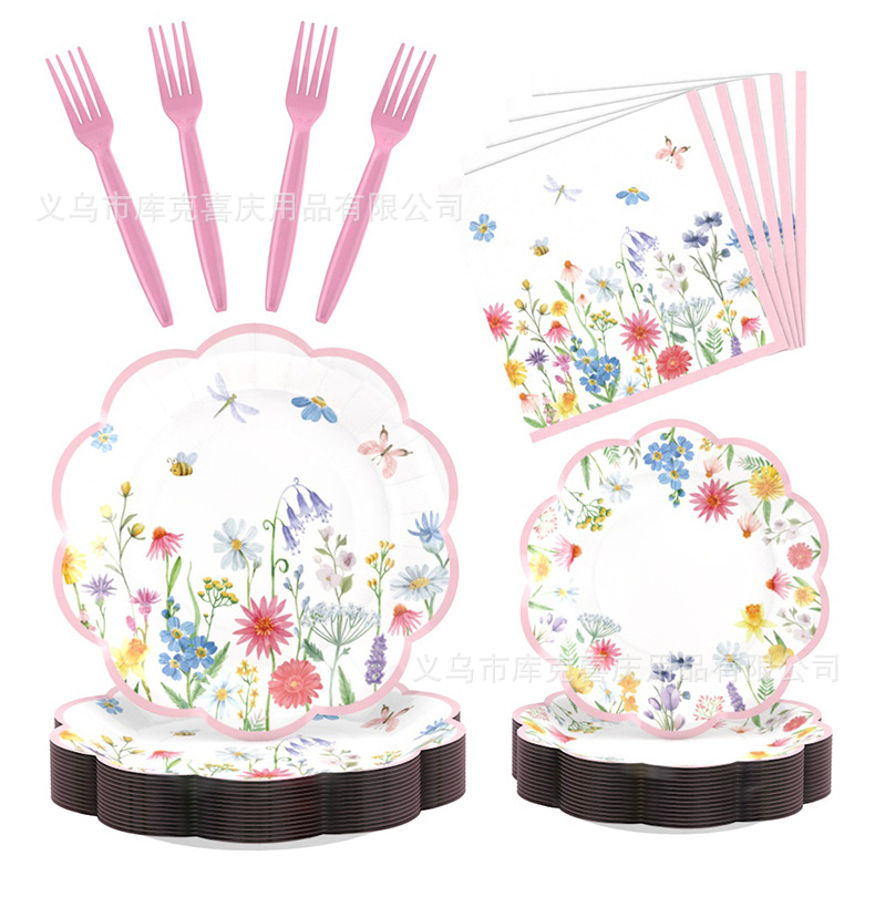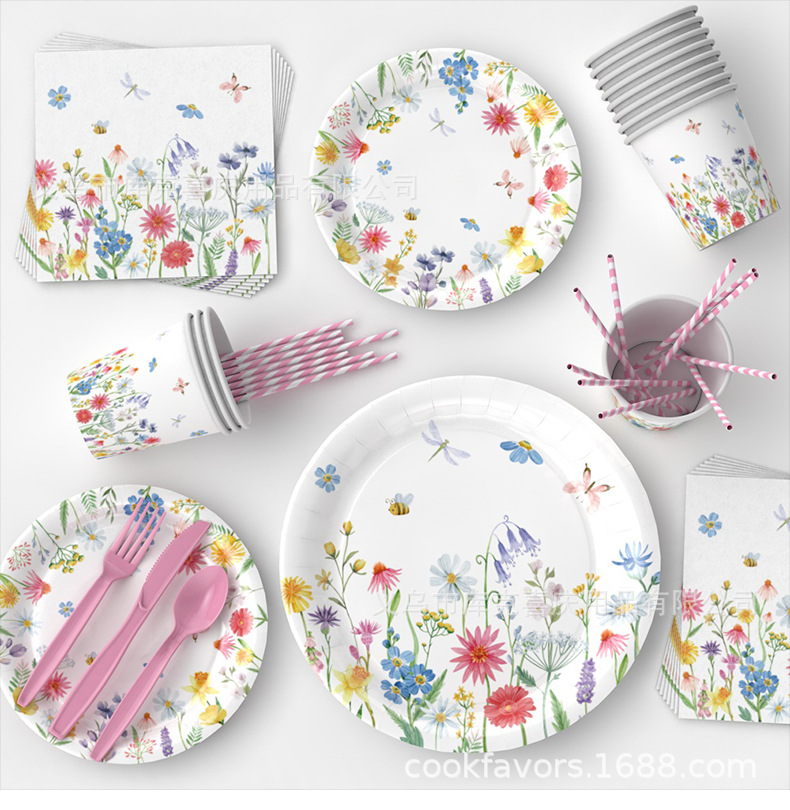 Amazonas primavera flor silvestre flor tema bandeja de papel desechable tazas de papel toallas set de cubiertos decoración de fiesta de cumpleaños