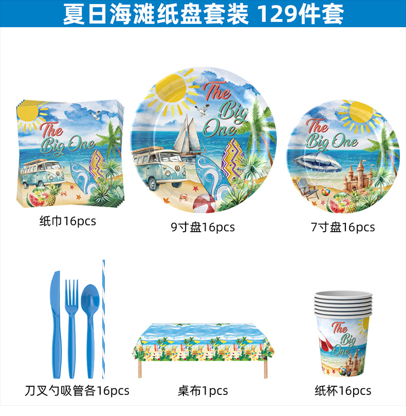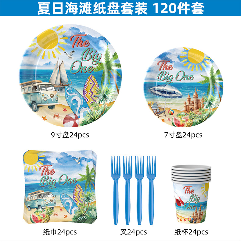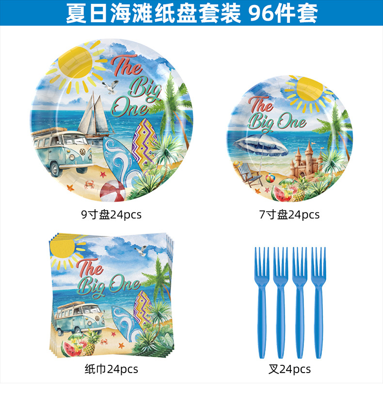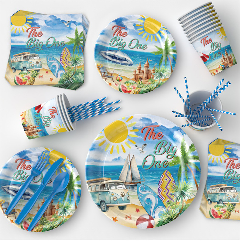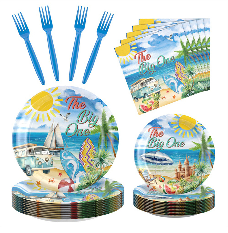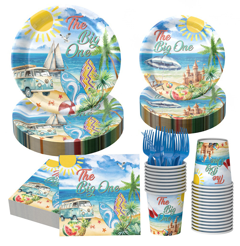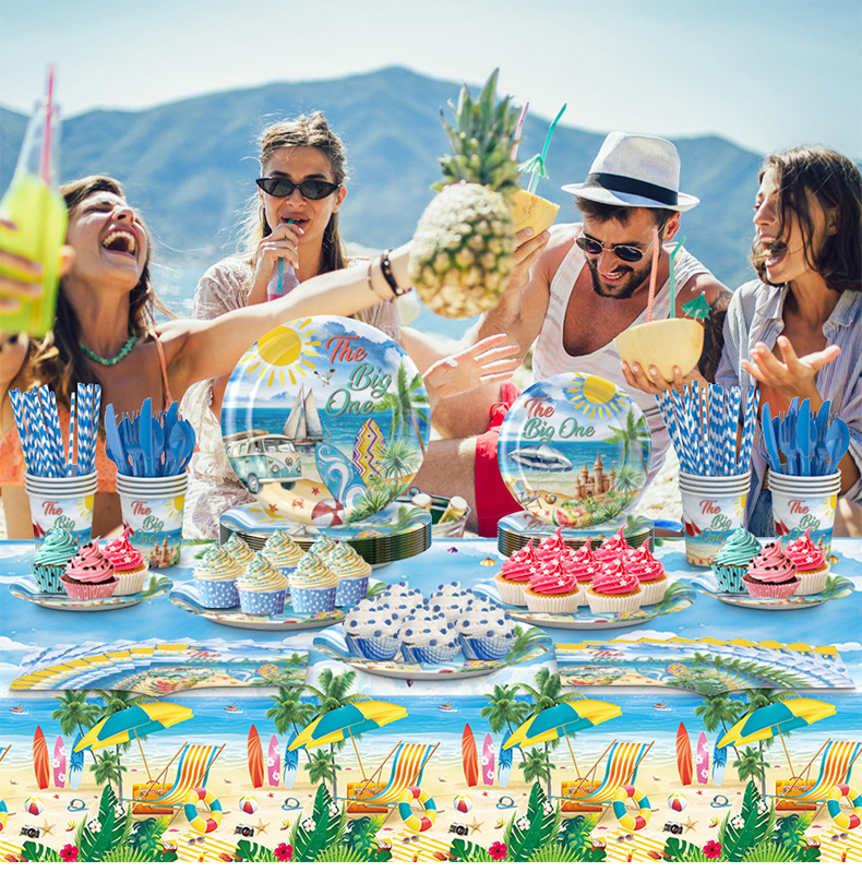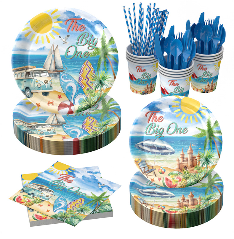 Verano surf de playa tema de fiesta cubiertos de verano bandeja de papel desechable taza de papel conjunto de decoración de toallas