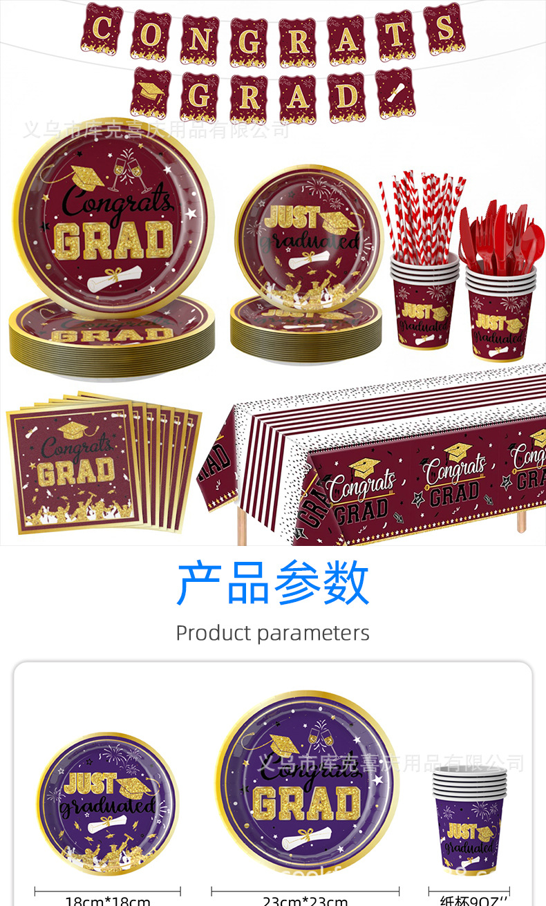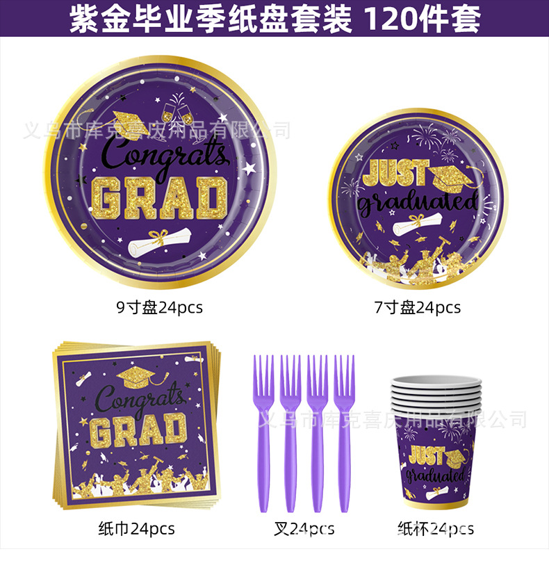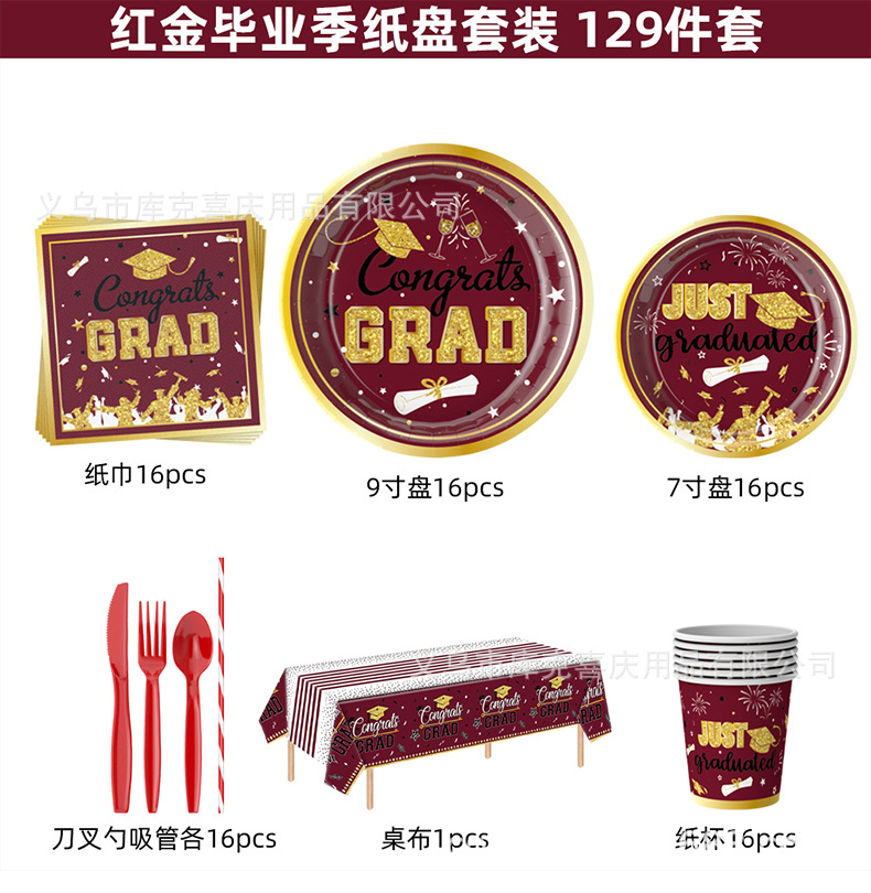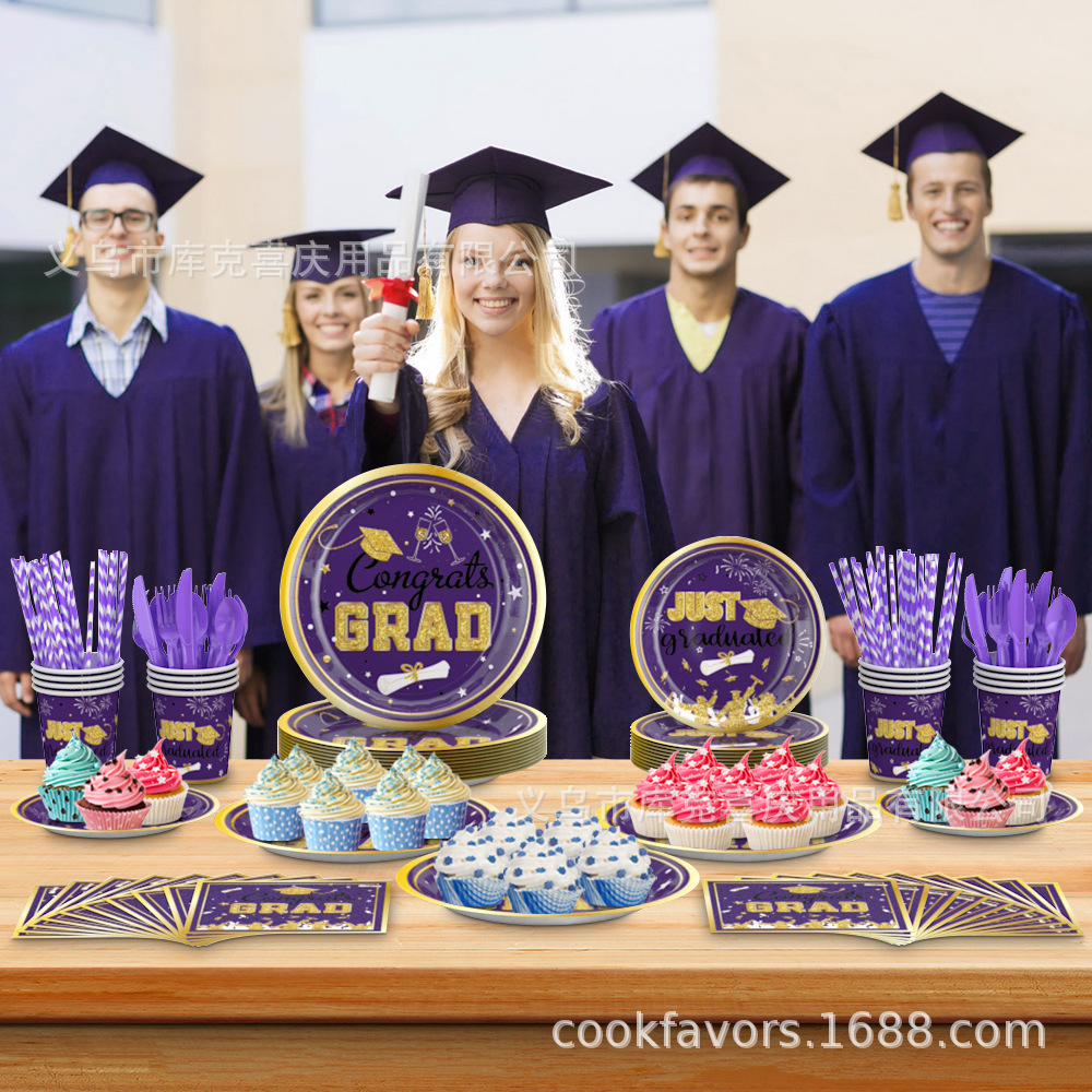Nueva temporada de graduación cubiertos de fiesta fiesta de graduación bandeja de papel desechable taza de papel toalla de papel conjunto de decoración de platos