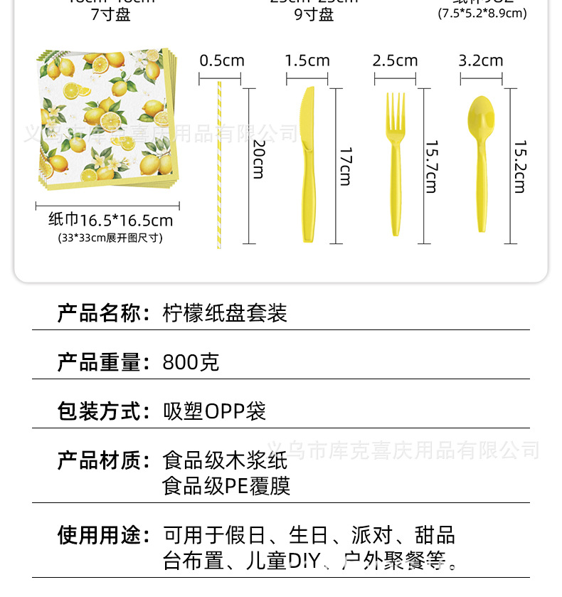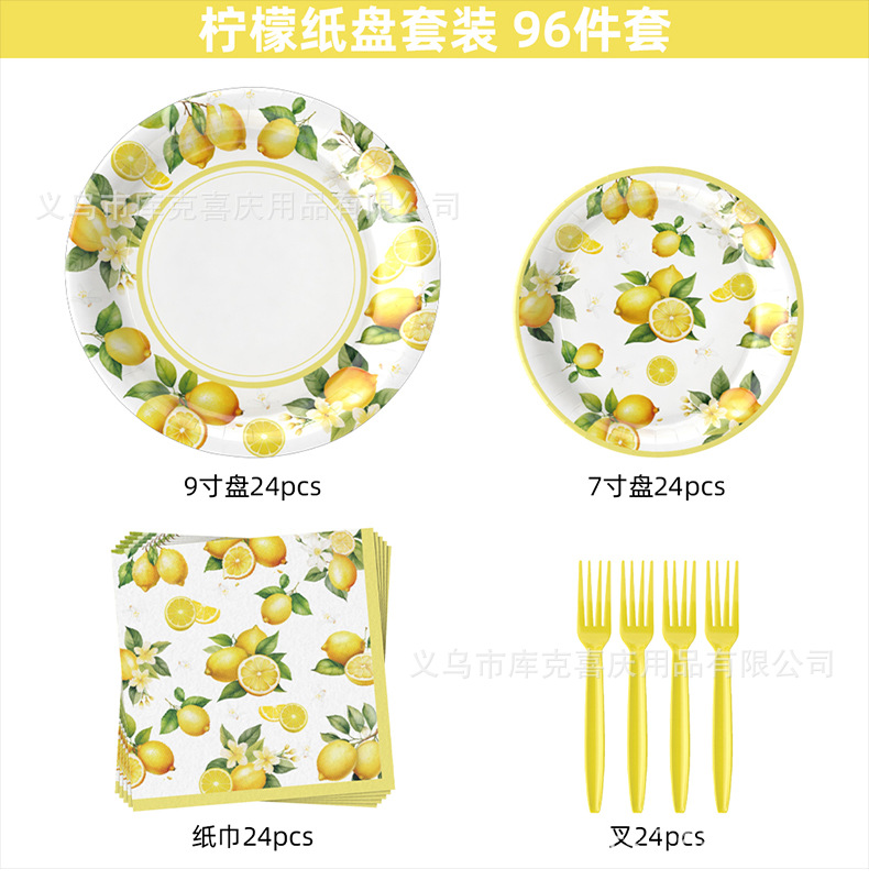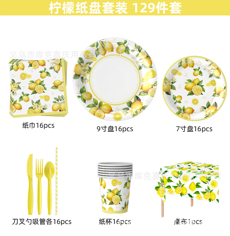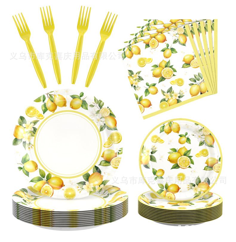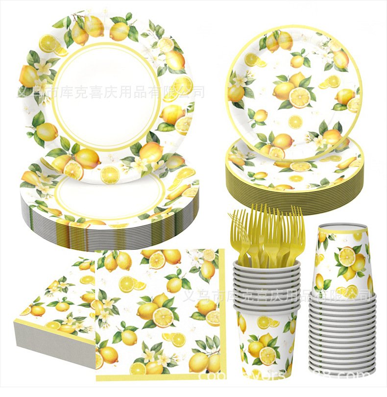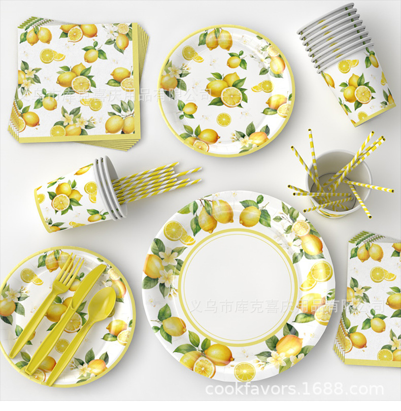Cross-border amarillo tema de limón decoración de fiesta verano limón cumpleaños bandeja de papel desechable taza de papel toalla de papel mantel