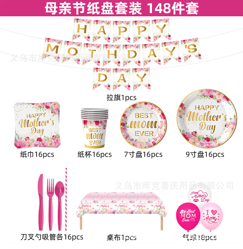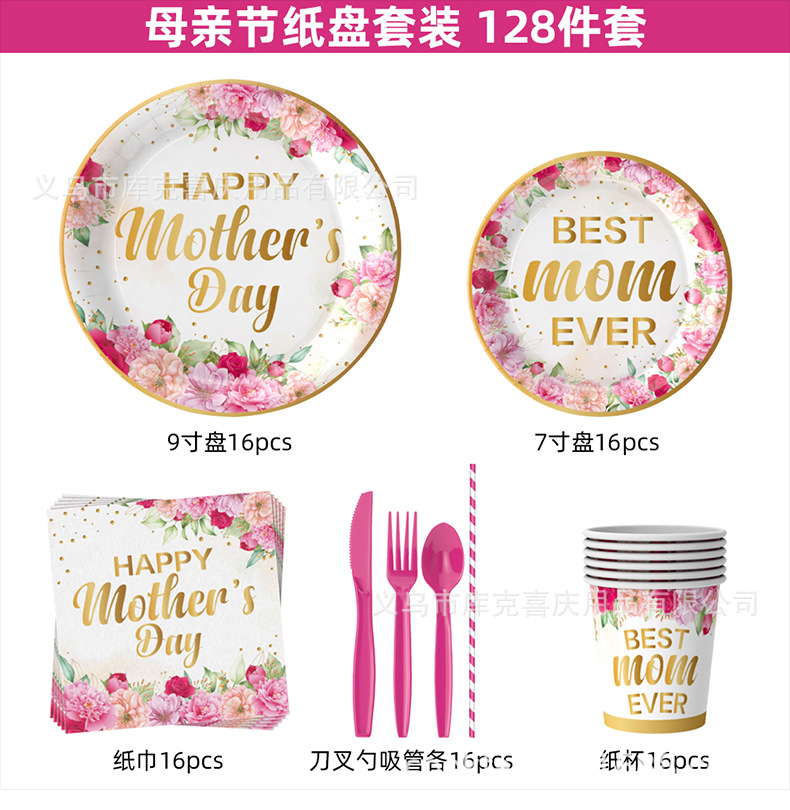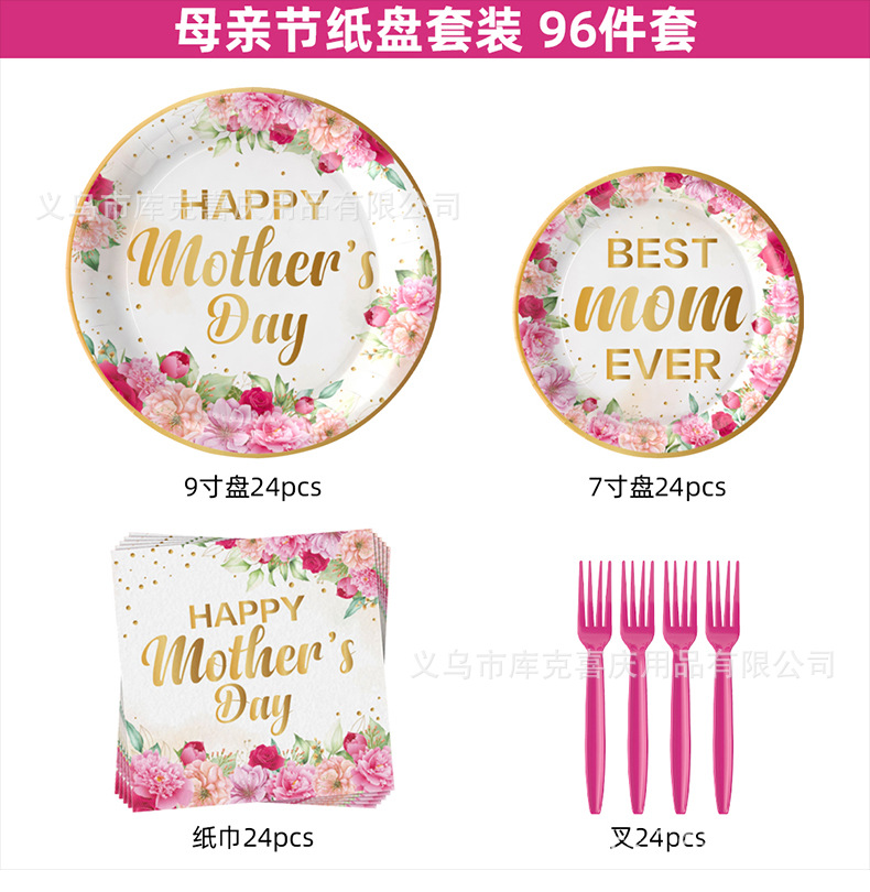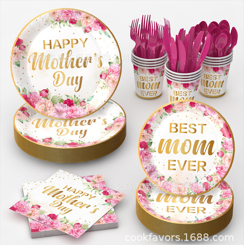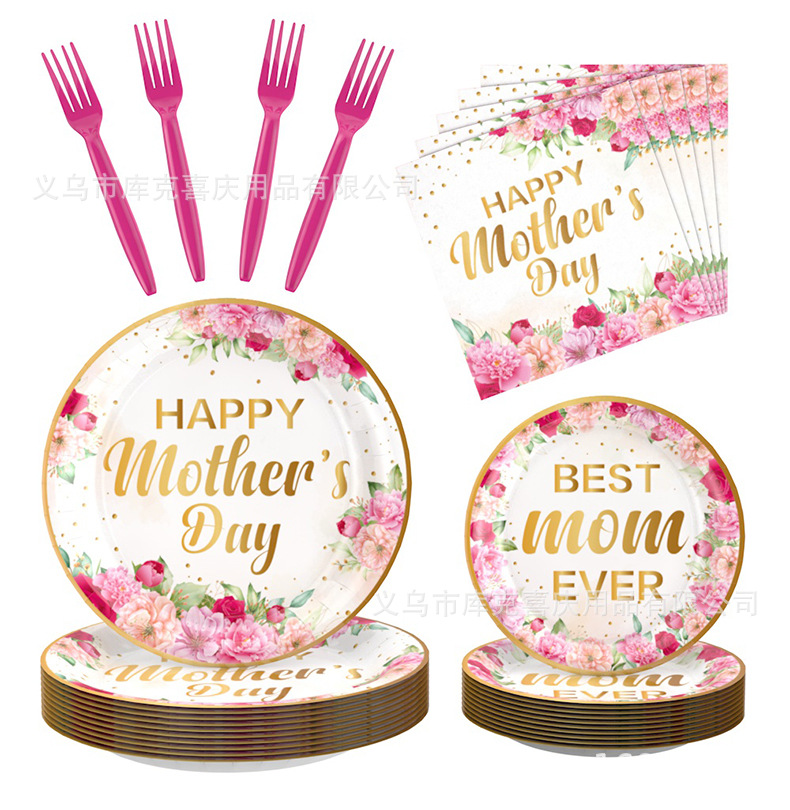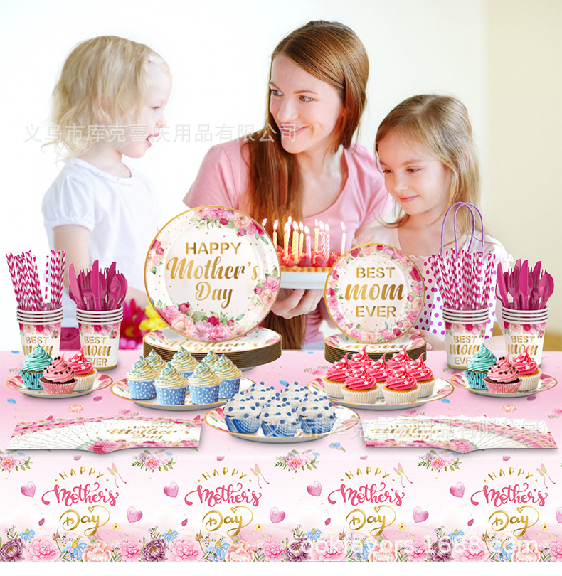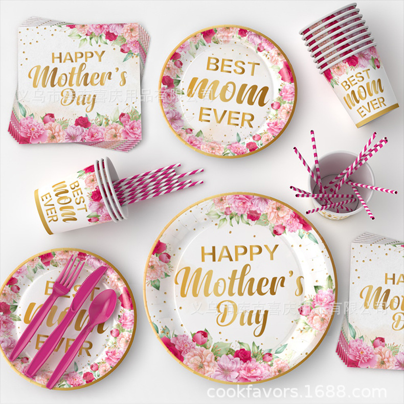 Nueva Mother's Day Flower Theme Party Bandeja de papel Taza de papel Toallas de papel Decoración de la fiesta del día de la madre