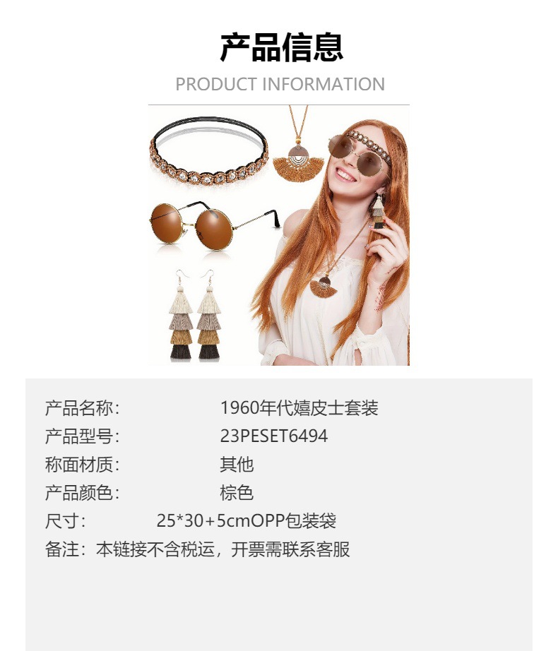 Venta caliente transfronteriza 1960 años hippie gafas collar aretes conjunto de accesorios de juego de rol accesorios de ropa