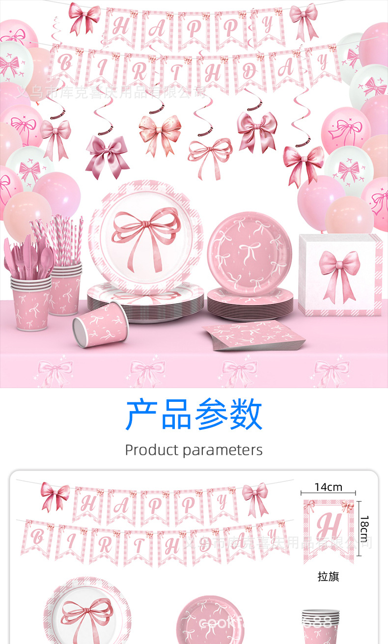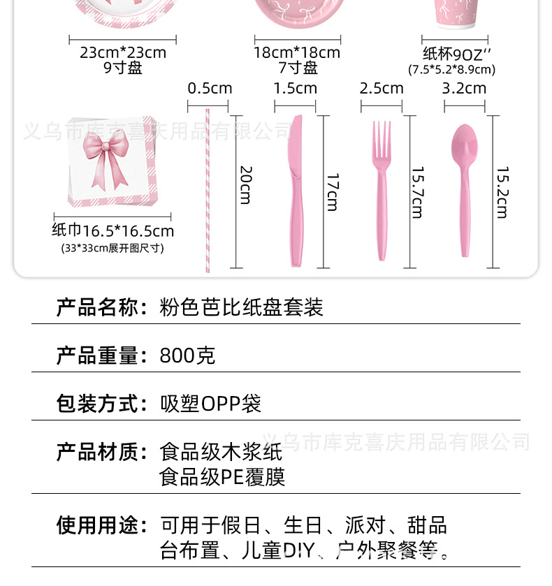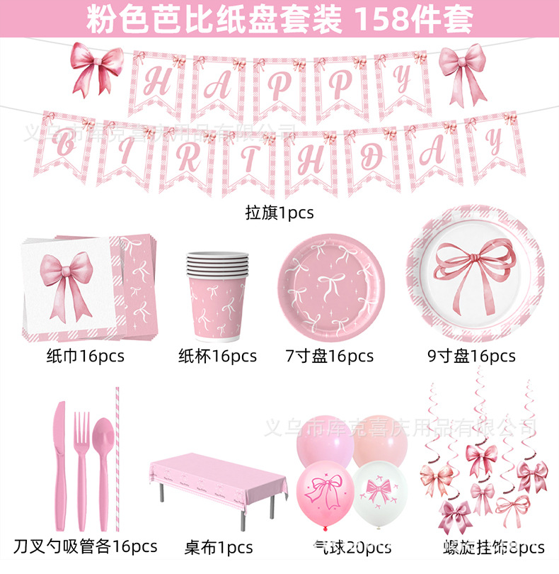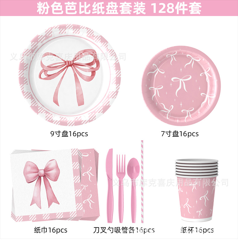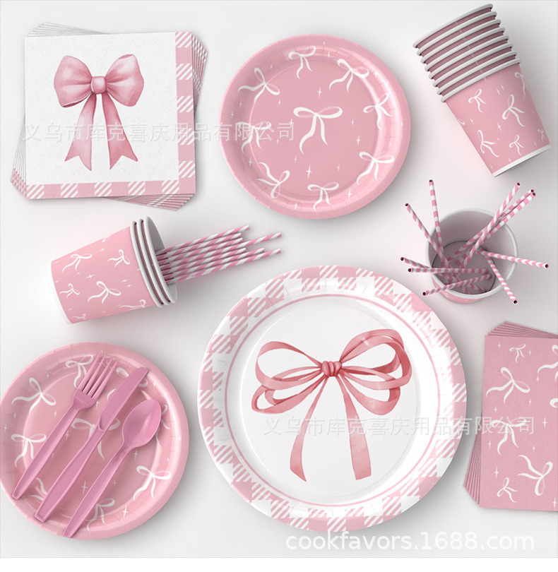 Amazon Pink Bowknot Party Decoración Niña Fiesta de cumpleaños Bandeja de papel desechable Taza de papel Bandeja de papel