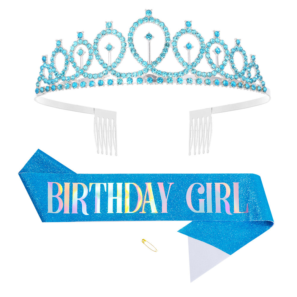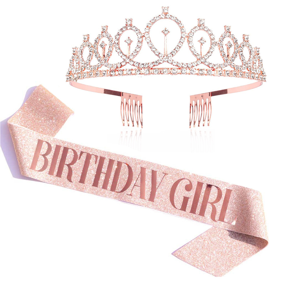Joyería de cumpleaños brillante corona de diamante chica cinturón de cinturón reina correa de etiqueta decoración de cumpleaños suministros de fiesta