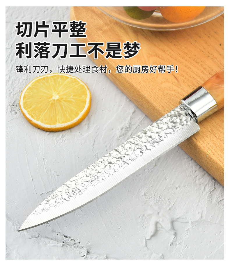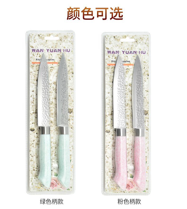 Fábrica al por mayor forja espejo ligero multiusos cuchillo de fruta de dos piezas mango de plástico de color cuchillo de pelar tarjeta de succión embalaje