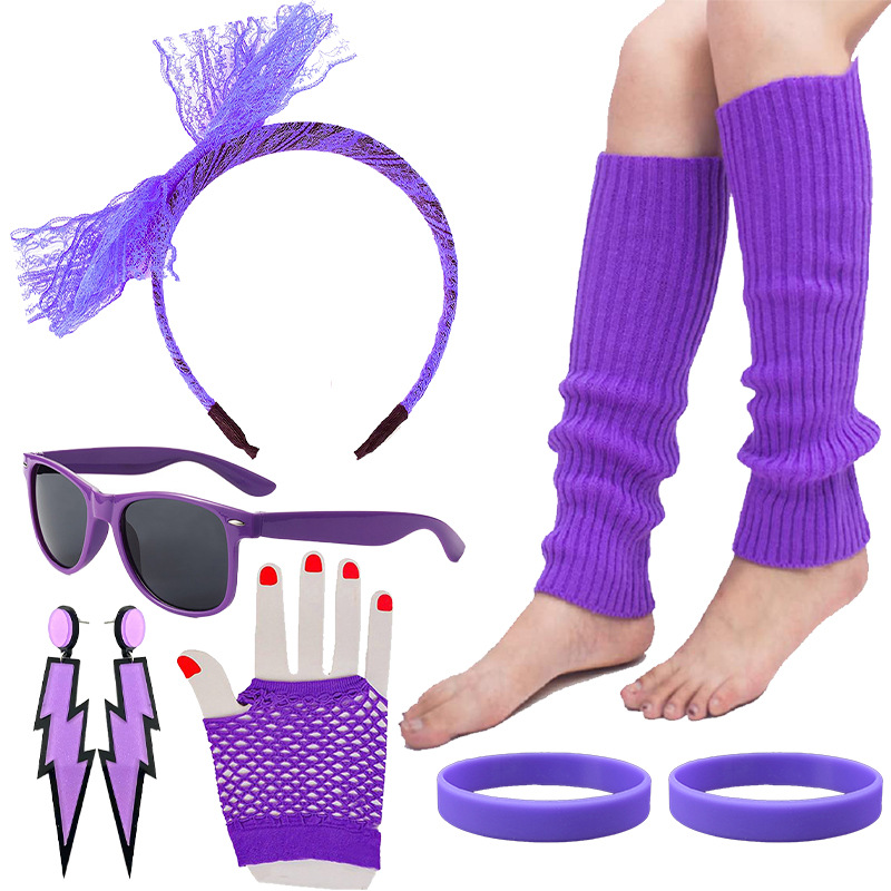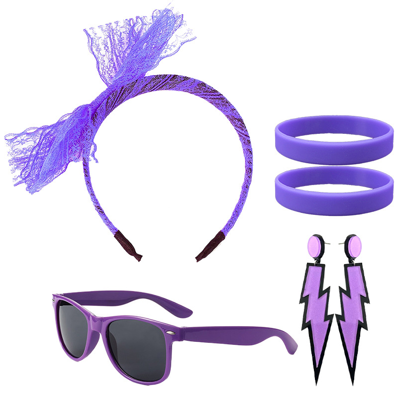 1980 púrpura rosa roja cabeza hebilla gafas pendientes guantes Carnaval fiesta traje de baile suministros