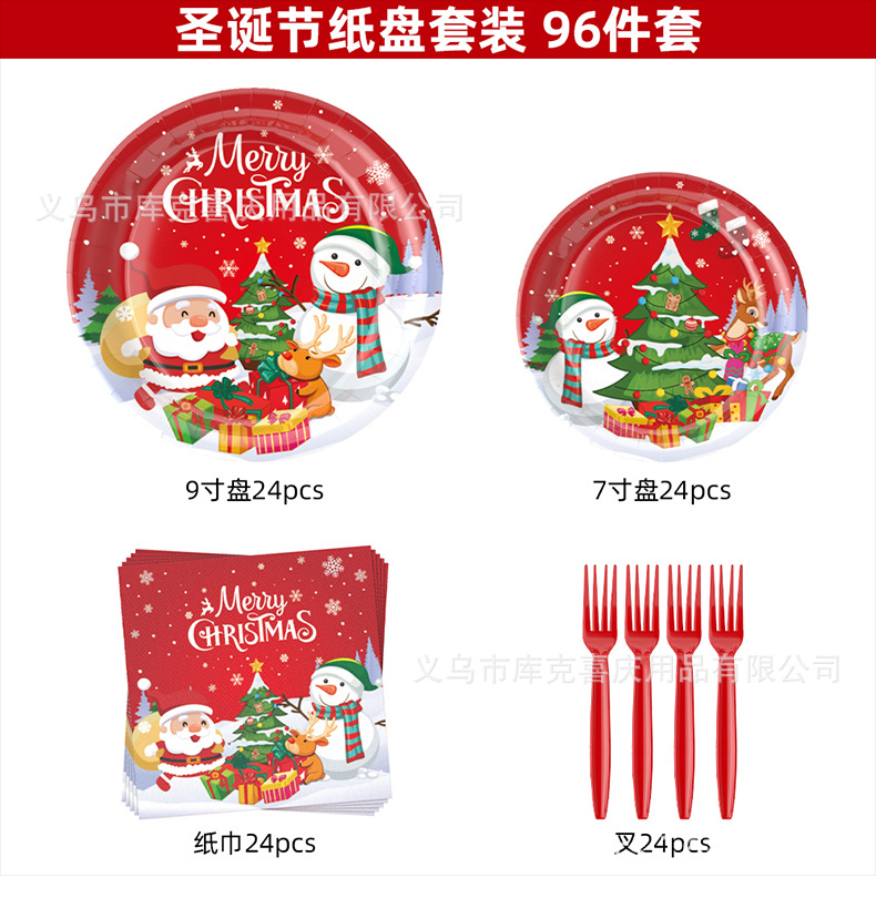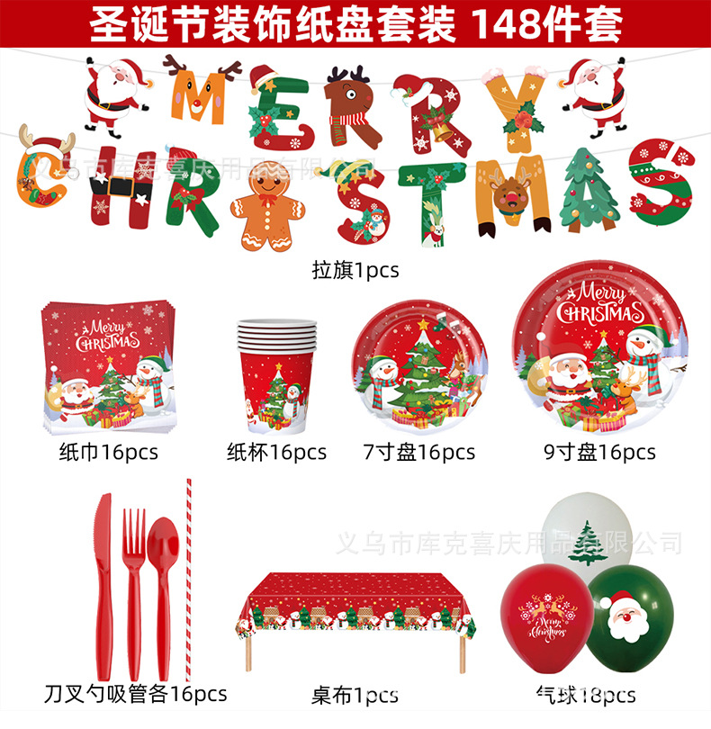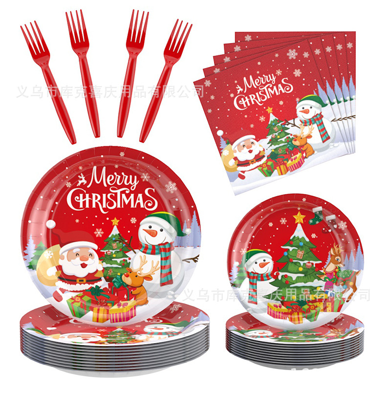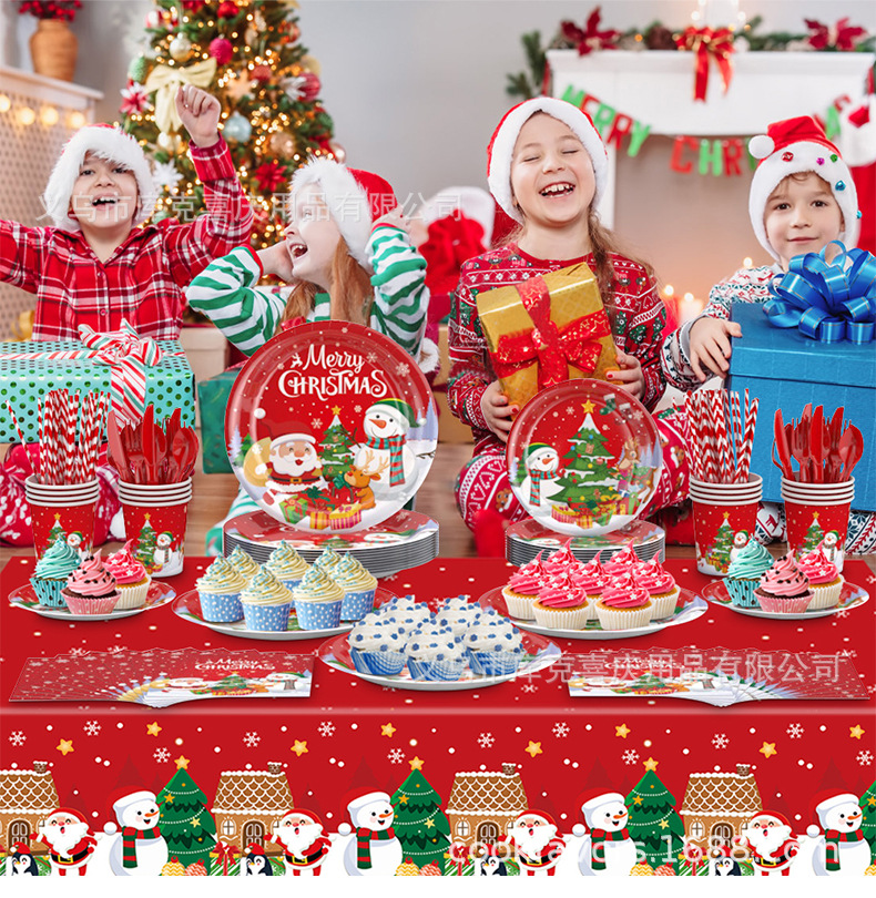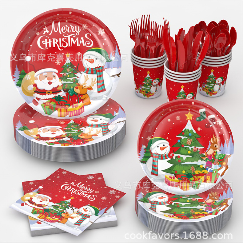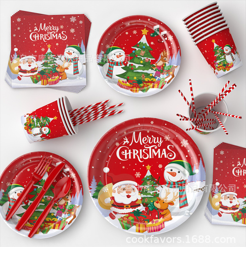 Nuevos artículos de decoración de la fiesta de Navidad bandeja de papel desechable taza de papel toallas de bandera de dibujo de decoración de platos