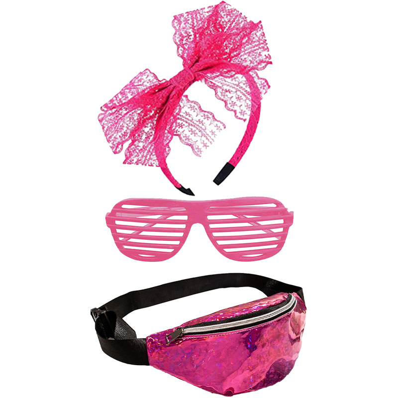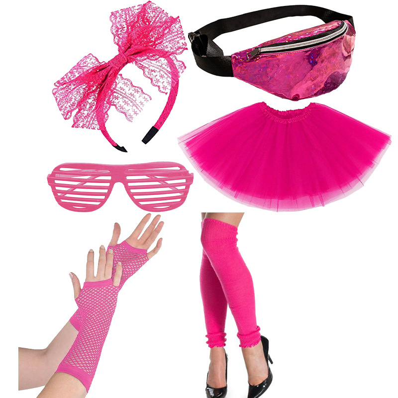80's Rose rojo diadema gafas rodilla guantes cintura bolsa carnaval partido traje de la danza
