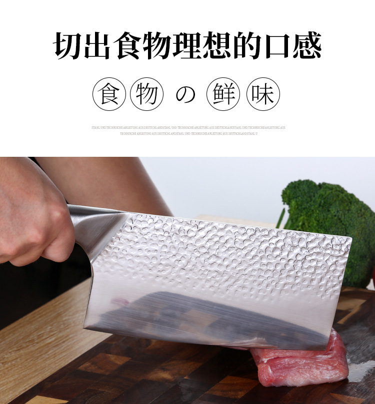 Fábrica directa mango de madera de color de cocina cortar huesos cortar verduras afiladas cuchillo casero martillo de acero inoxidable forjado cortador