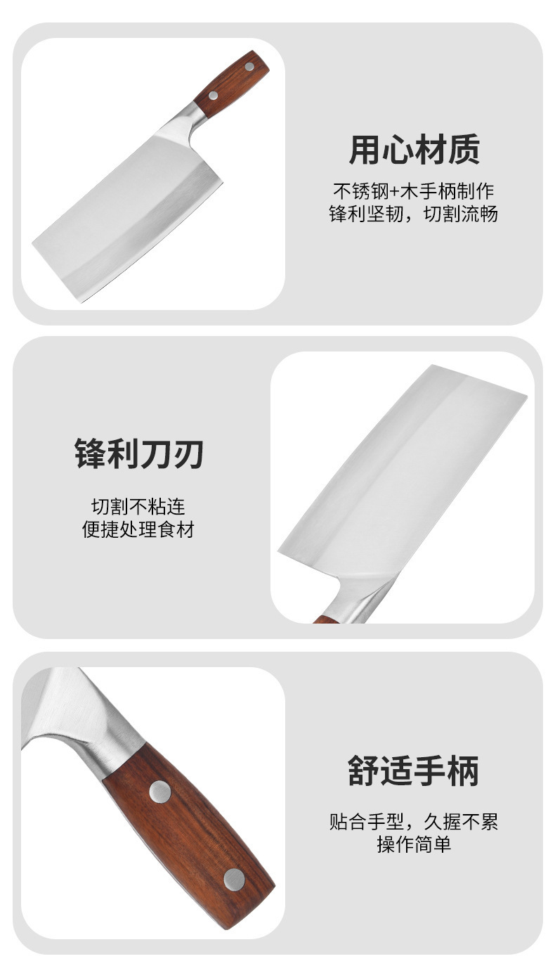 Cuchillo de cocina de acero inoxidable con mango de madera Cuchillo de corte con mango de madera de doble clavo para uso doméstico Cuchillo de cocina Cuchillo de cocina