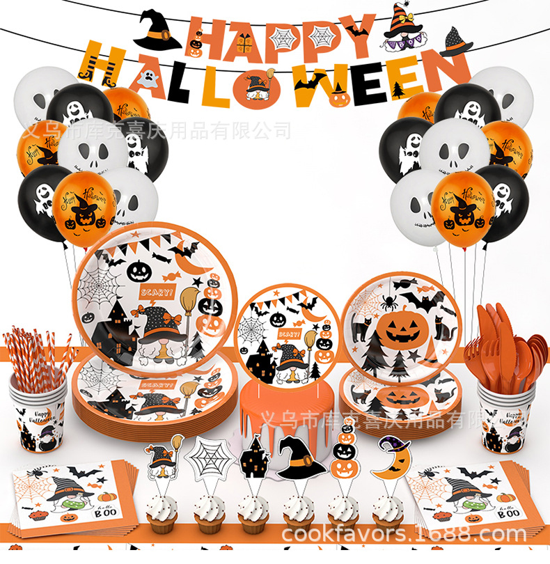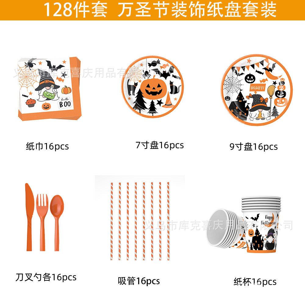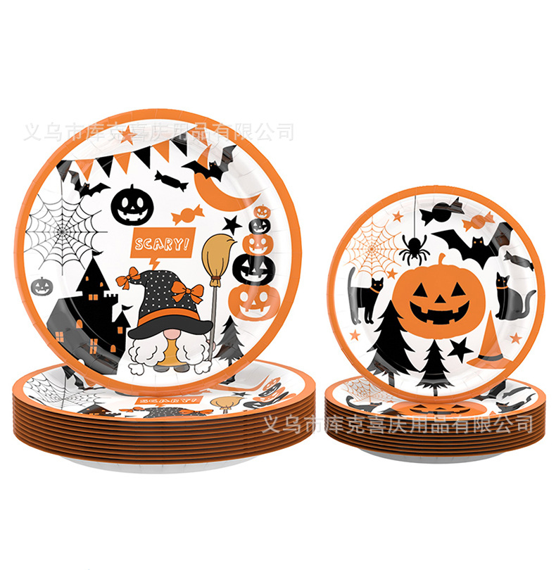 Halloween calabaza temática fiesta decoración fantasma taza bandeja de papel desechable bandeja de papel conjunto de cubiertos decorativos