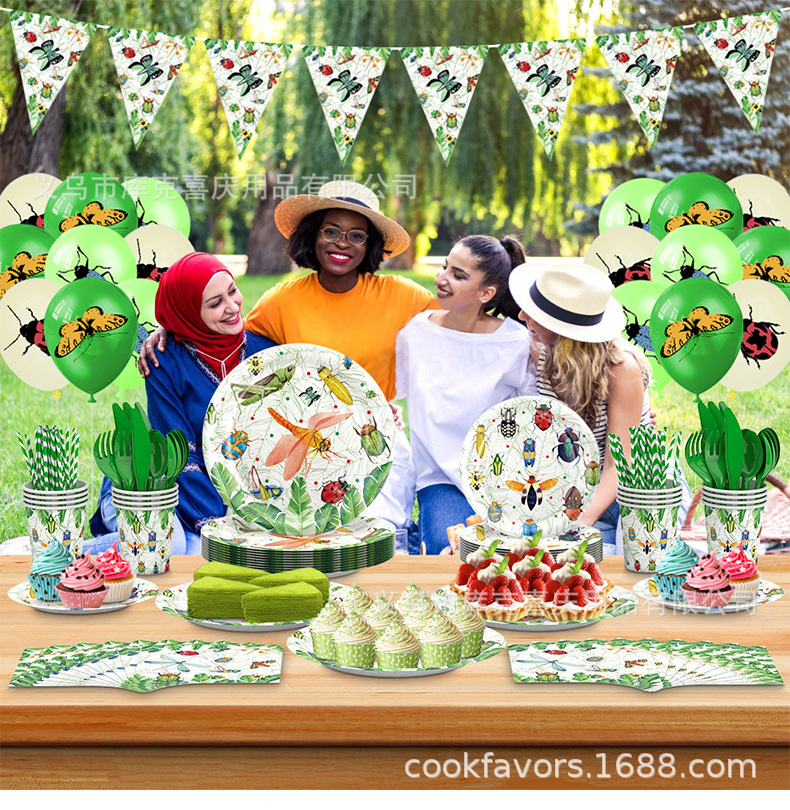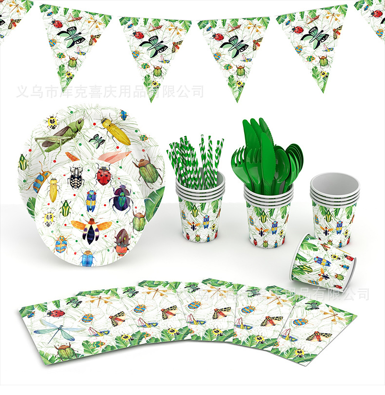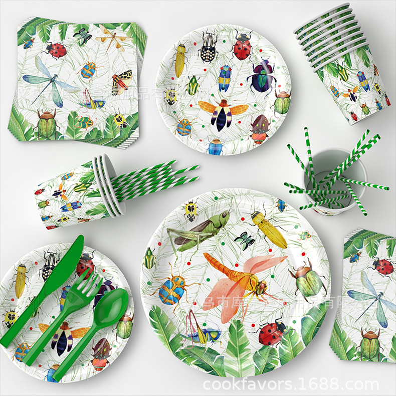 Insectos de primavera transfronterizos artículos de decoración de fiesta de siete estrellas mariposas bandeja de papel bandeja de papel toallas set cubiertos