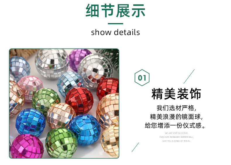 Decoraciones transfronterizas de árbol de Navidad Bola de vidrio de espuma Decoración de boda Bola de espejo láser Bola de discoteca reflectante