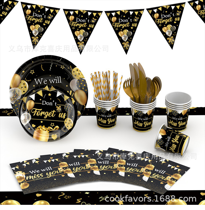 Amazon Black Gold Jubilación Temática Decoración de la fiesta Plate de papel desechable tazas de papel toallas de papel set de decoración de platos