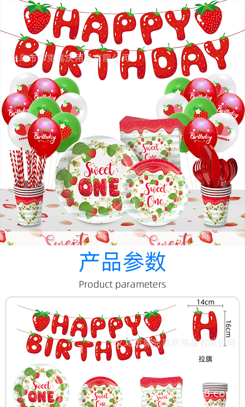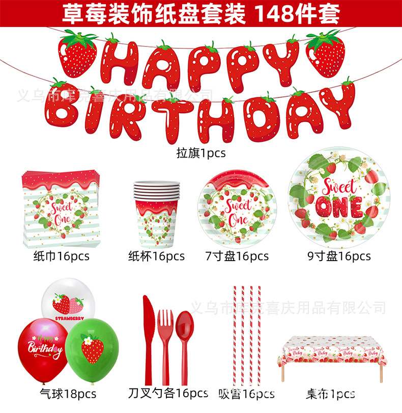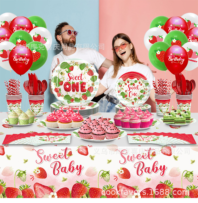 Amazon Spot Strawberry Theme Cumpleaños Fiesta Decoración Niños Años Bandeja de papel desechable Tira de papel Juego de bandera