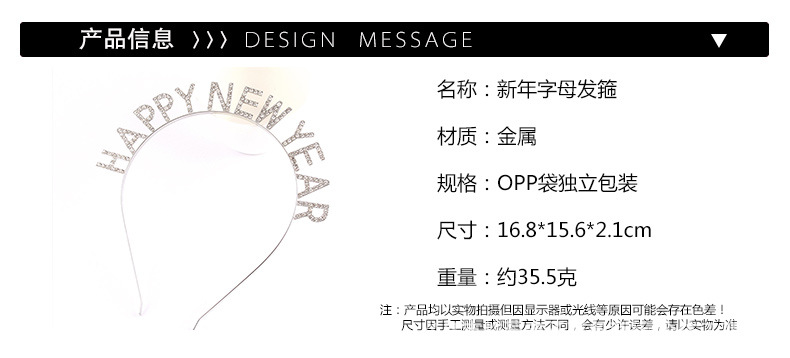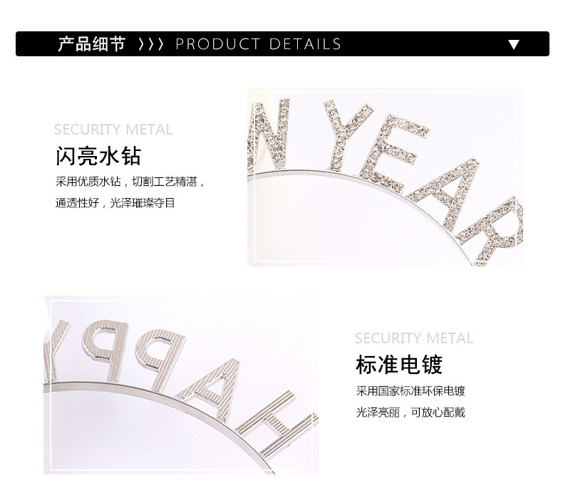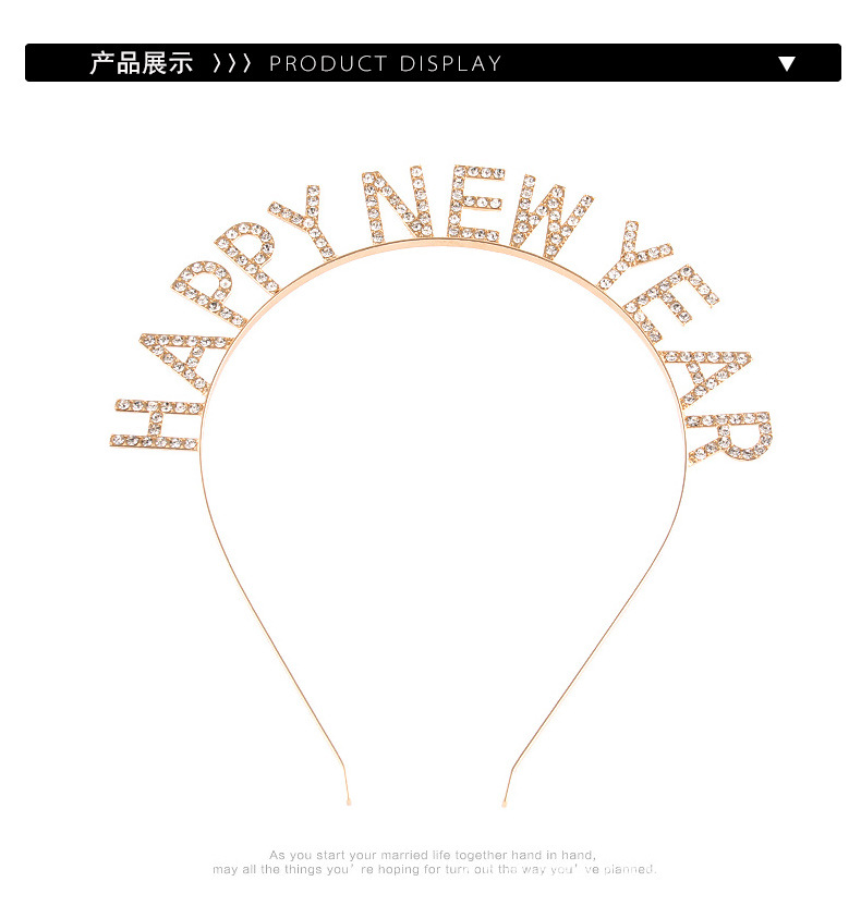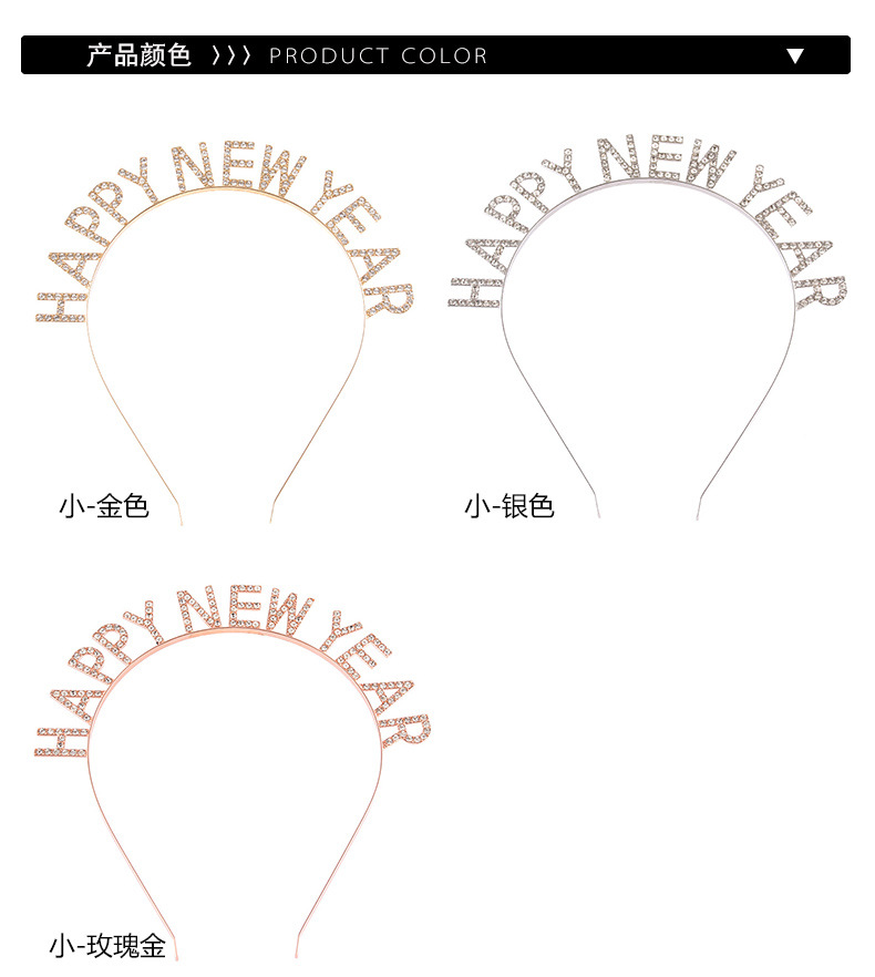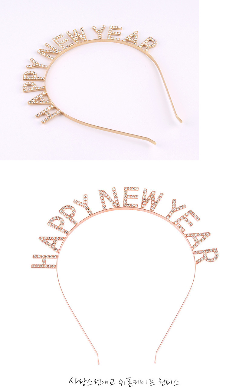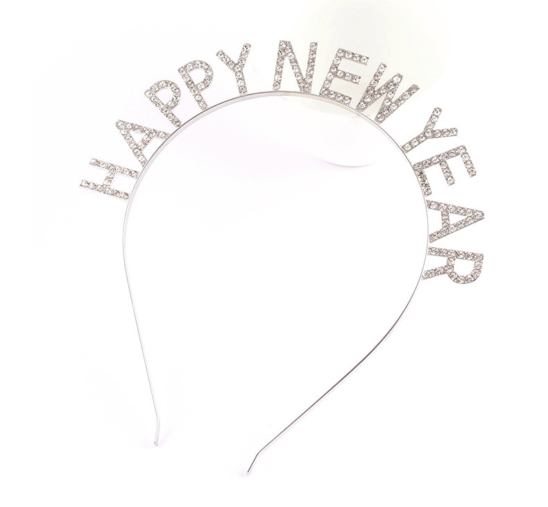 Feliz Año Nuevo decoración de cabeza de banda de cabello letras feliz año nuevo aleación de diamante de banda de cabello fiesta de cabeza