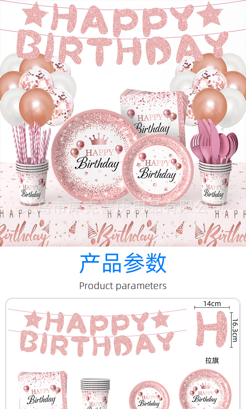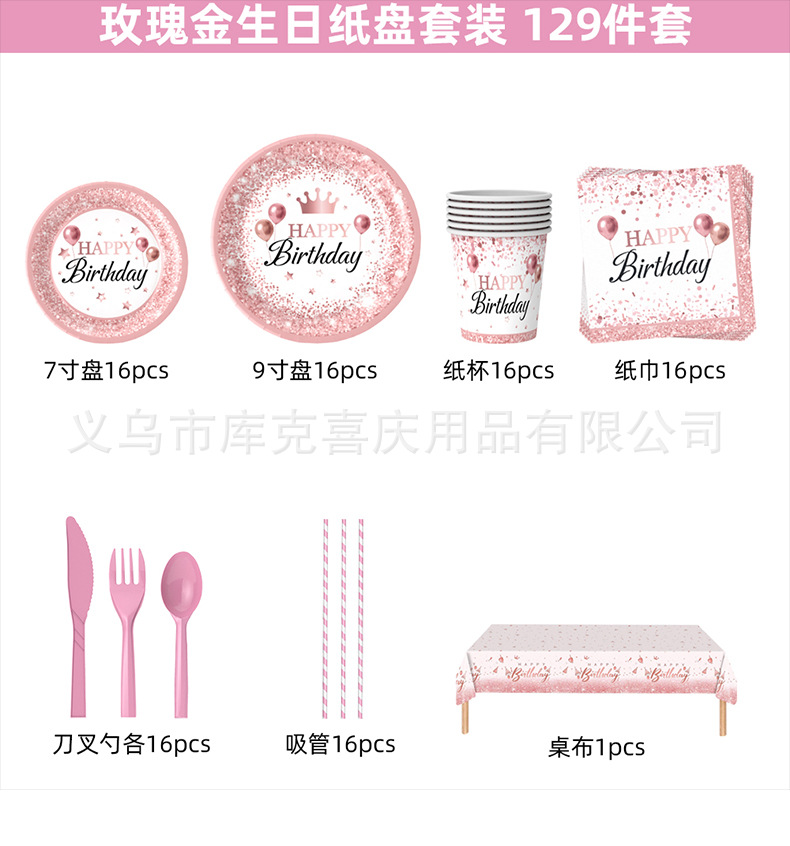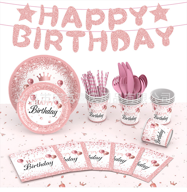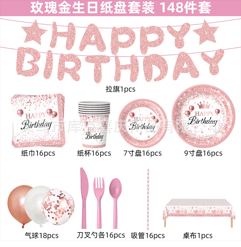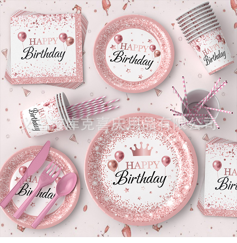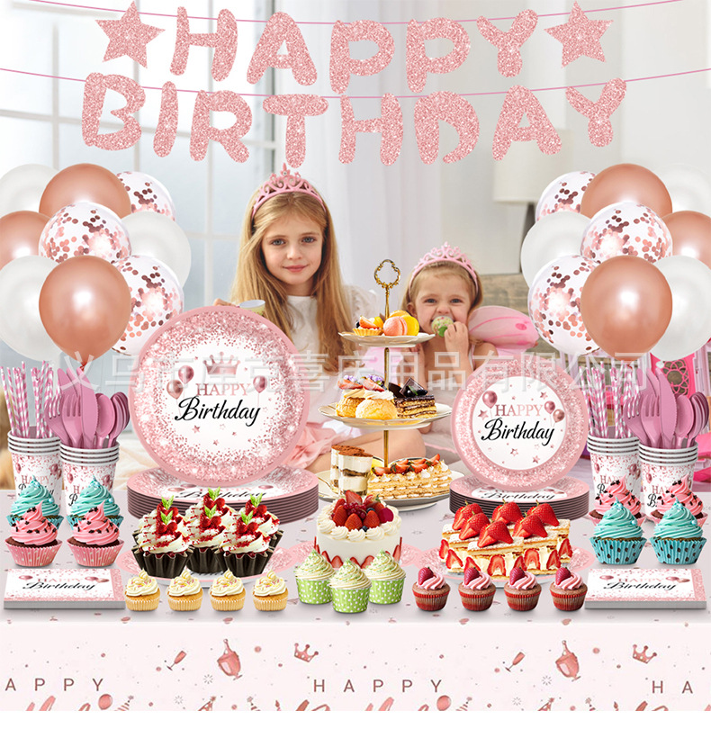 Nuevo oro rosa chica cumpleaños fiesta decoración suministros desechables papel placa tejido mantel decoración del partido traje