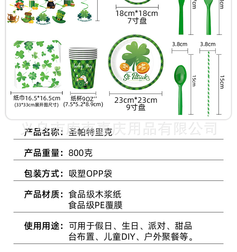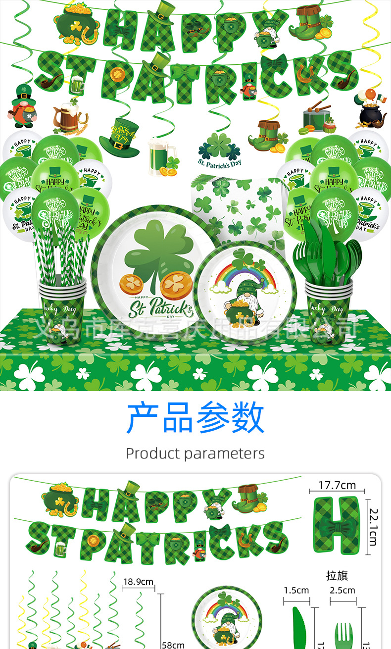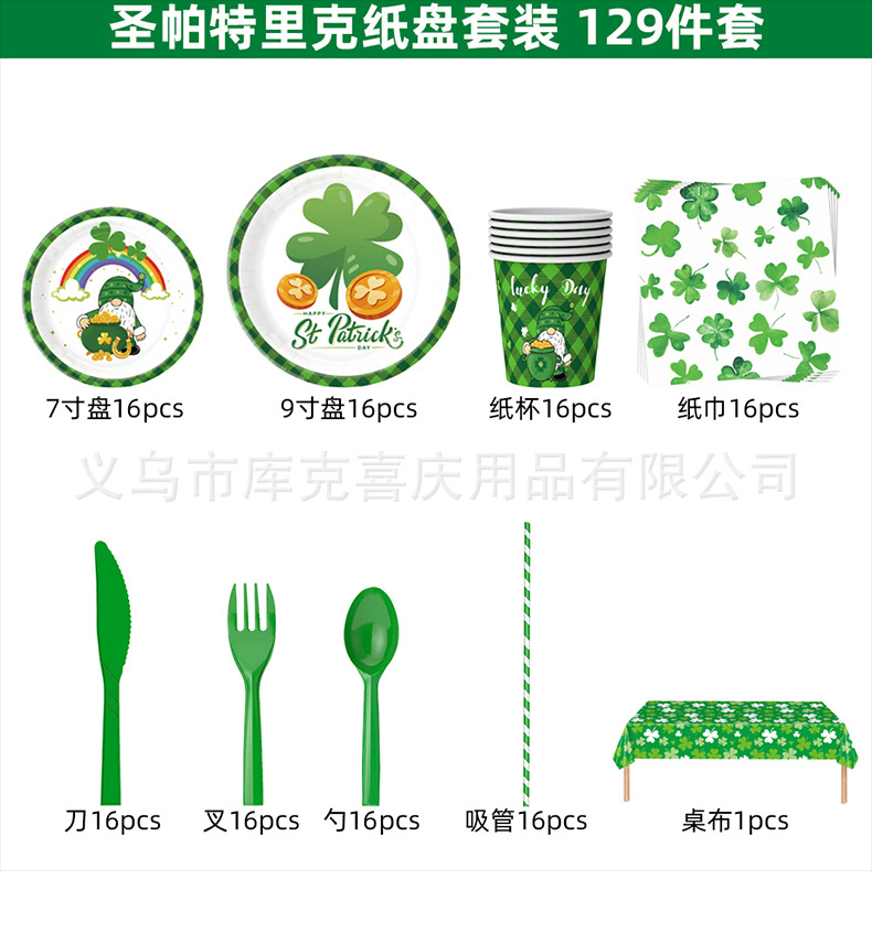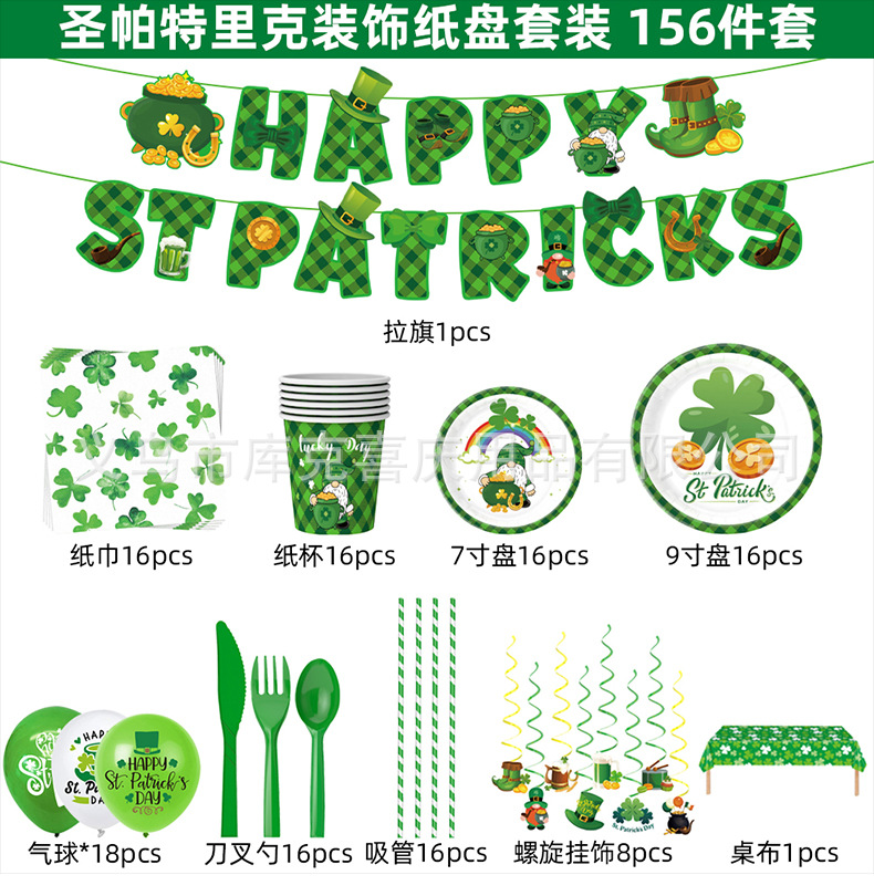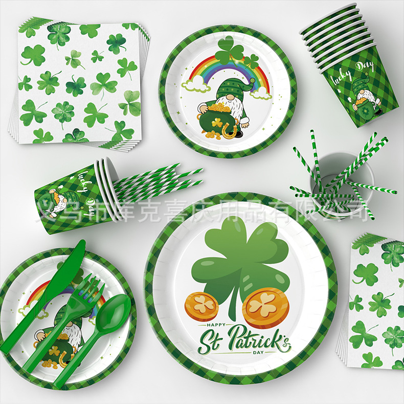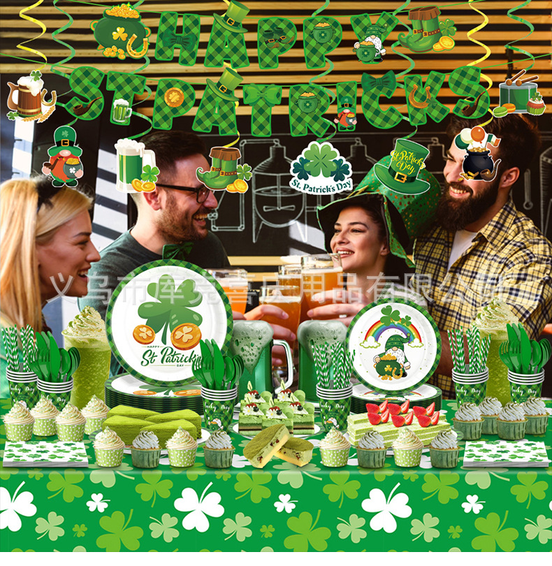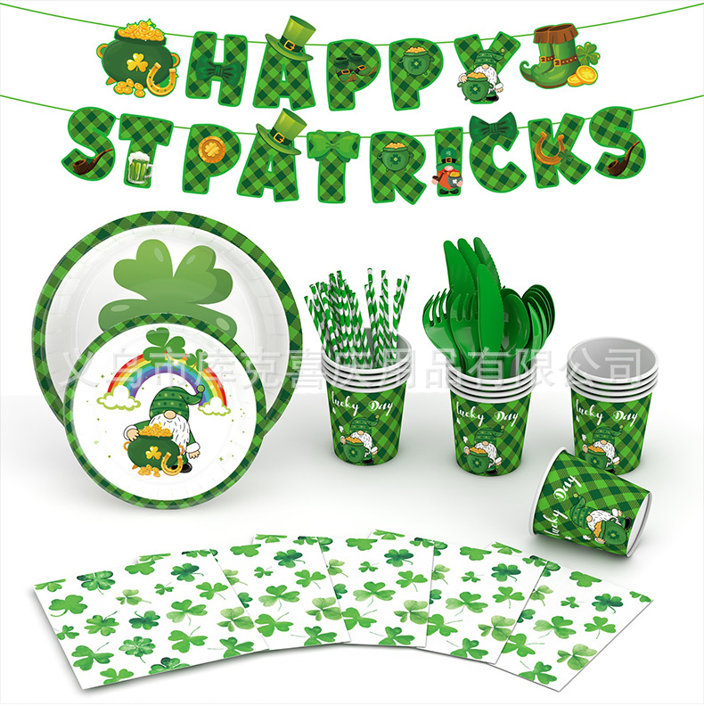 Nuevo día de San Patricio decoración del partido suministros trébol irlandés placa papel tejido mantel decoración traje