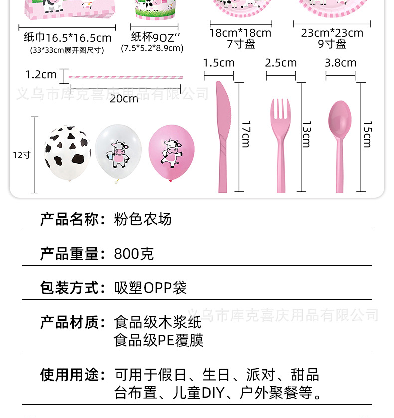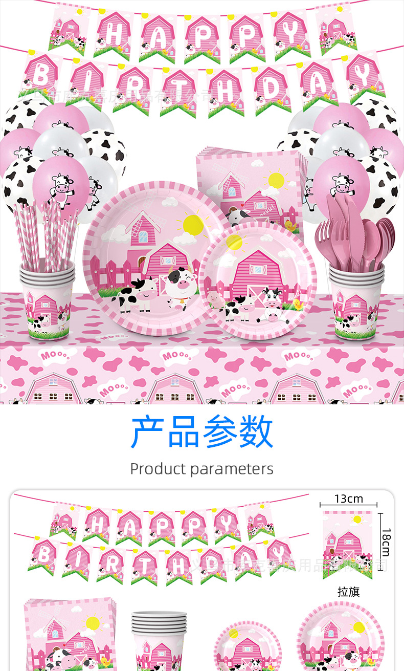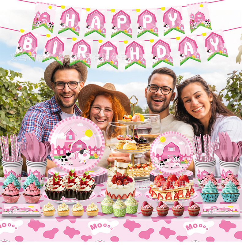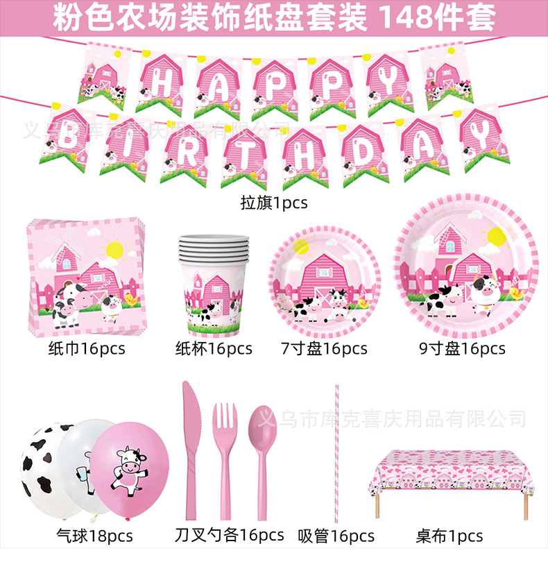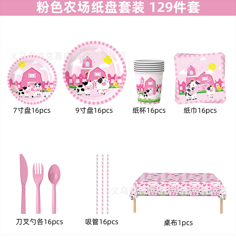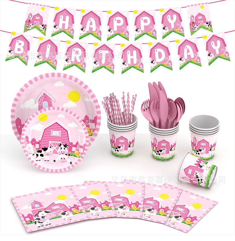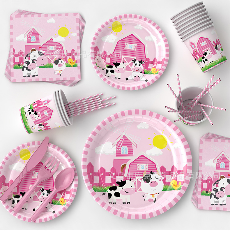 Transfronterizo nuevo tema animal de granja Rosa decoración del Partido cumpleaños de los niños plato de papel desechable cubierta de la taza de papel