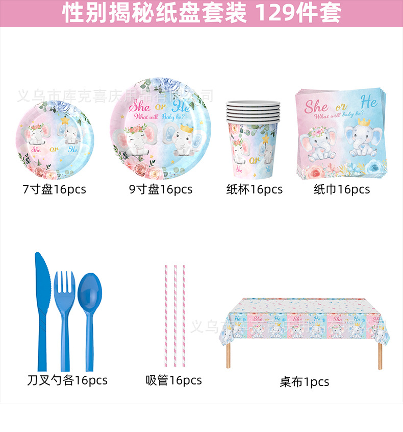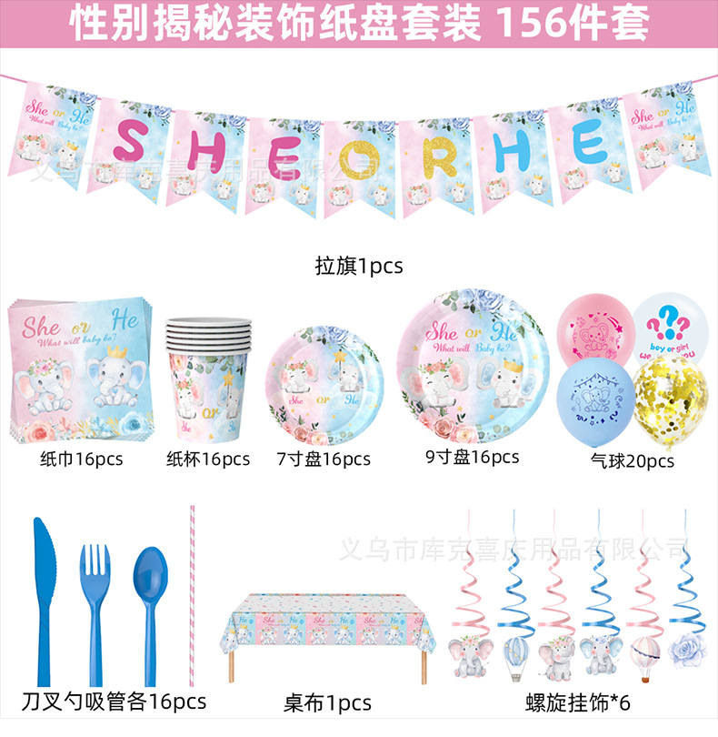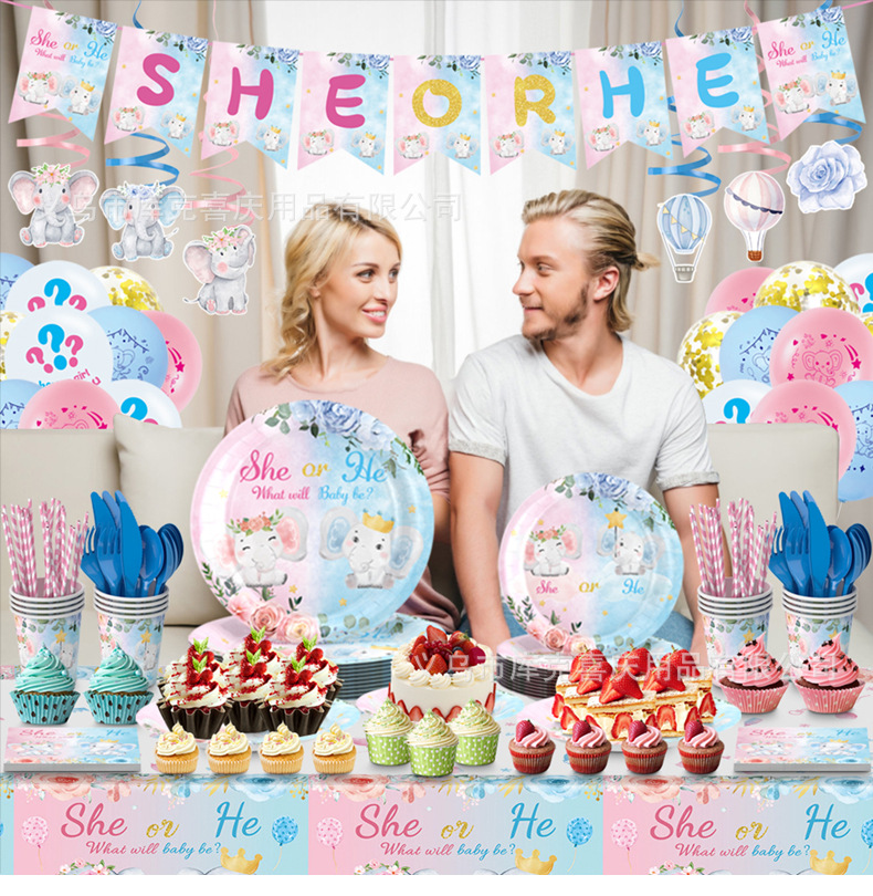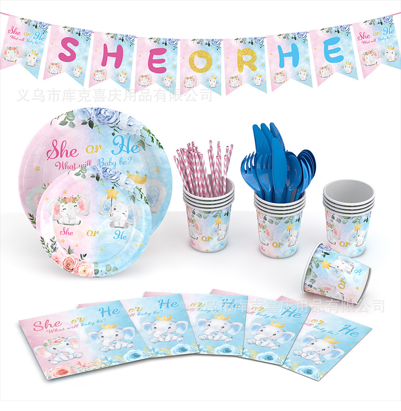 Amazon bebé género revelar partido decoración suministros niño niña plato de papel desechable taza de papel vajilla traje